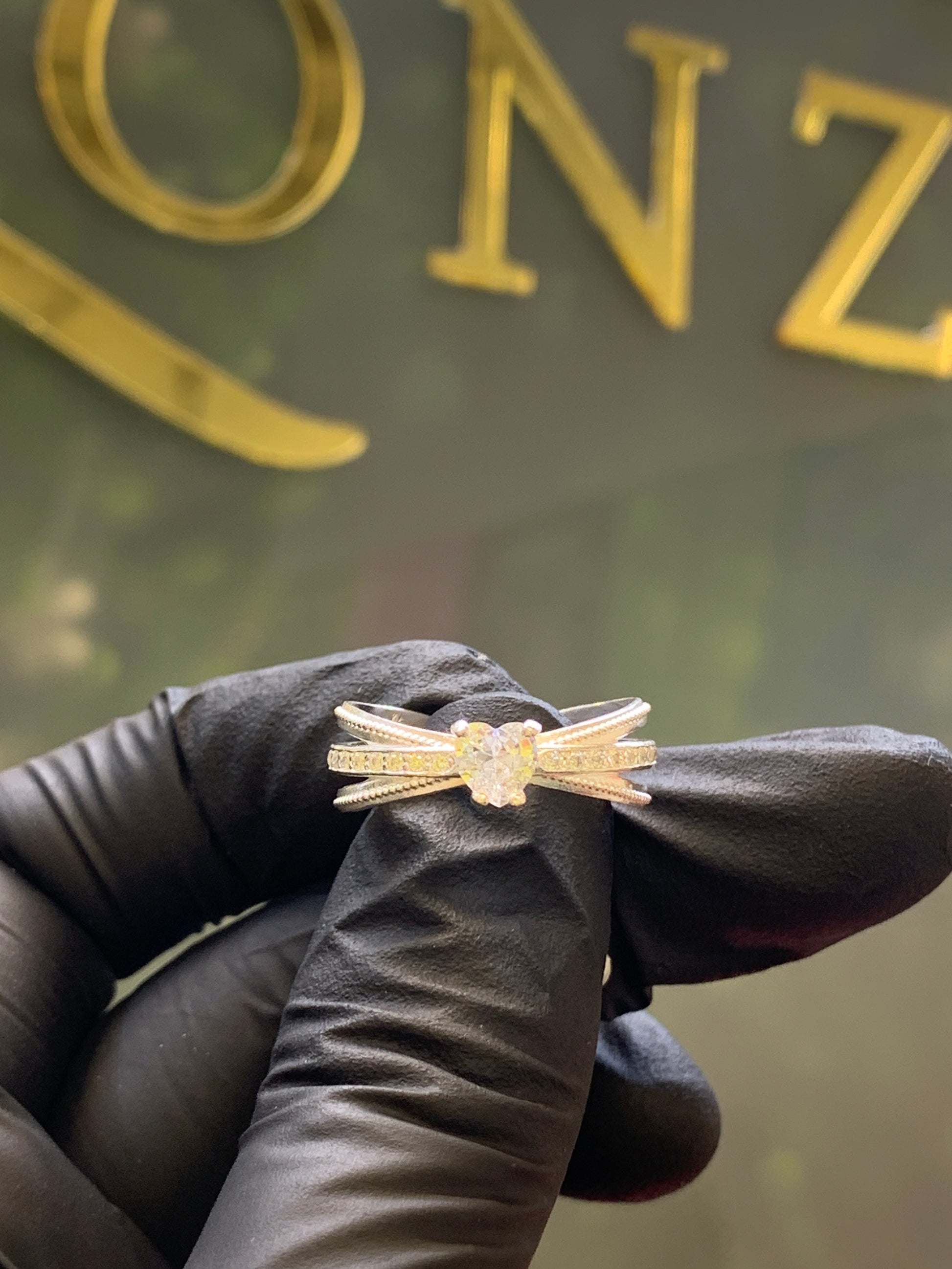 Anillo Plata .925 con circonia al centro en forma de corazón y circonias blancas al rededor