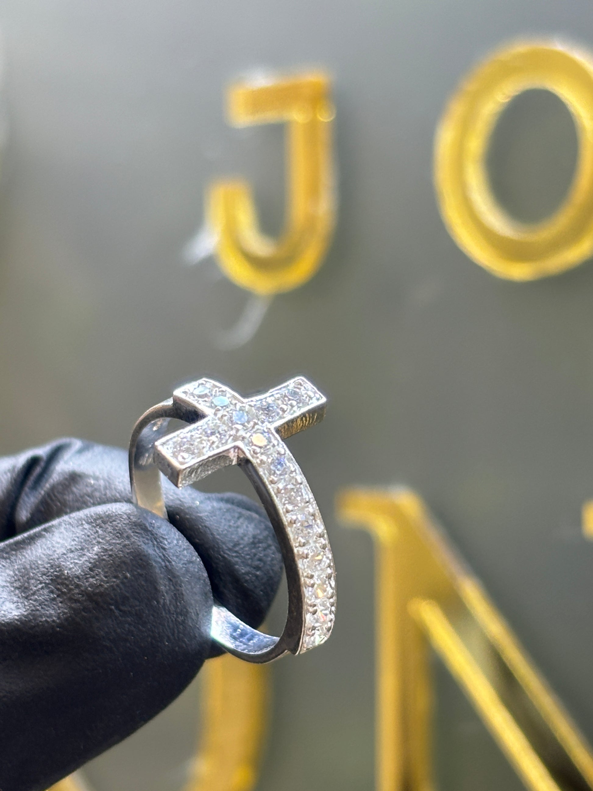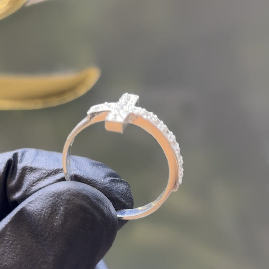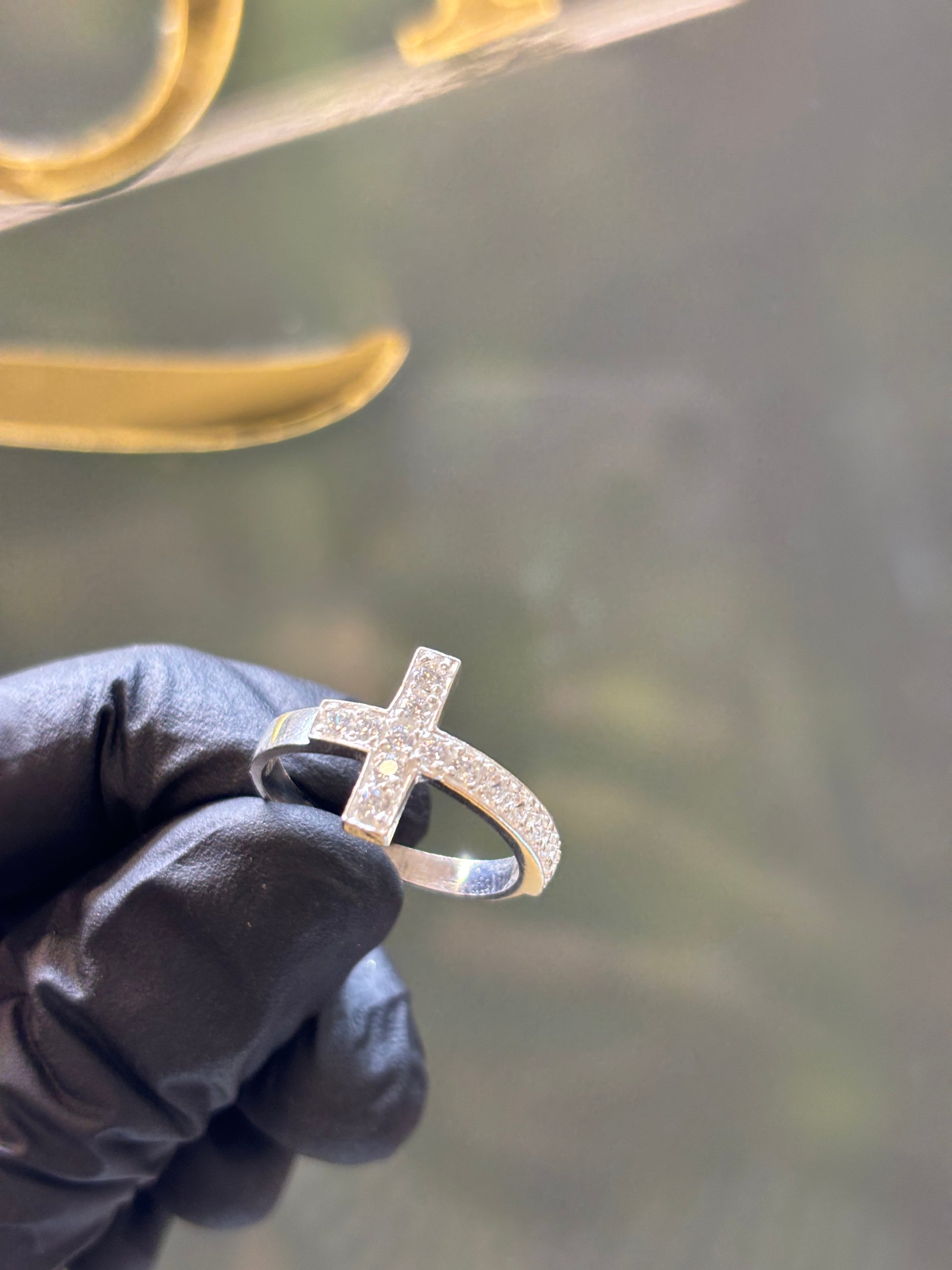 Anillo plata 925 cruz con piedra circonio modelo 12R