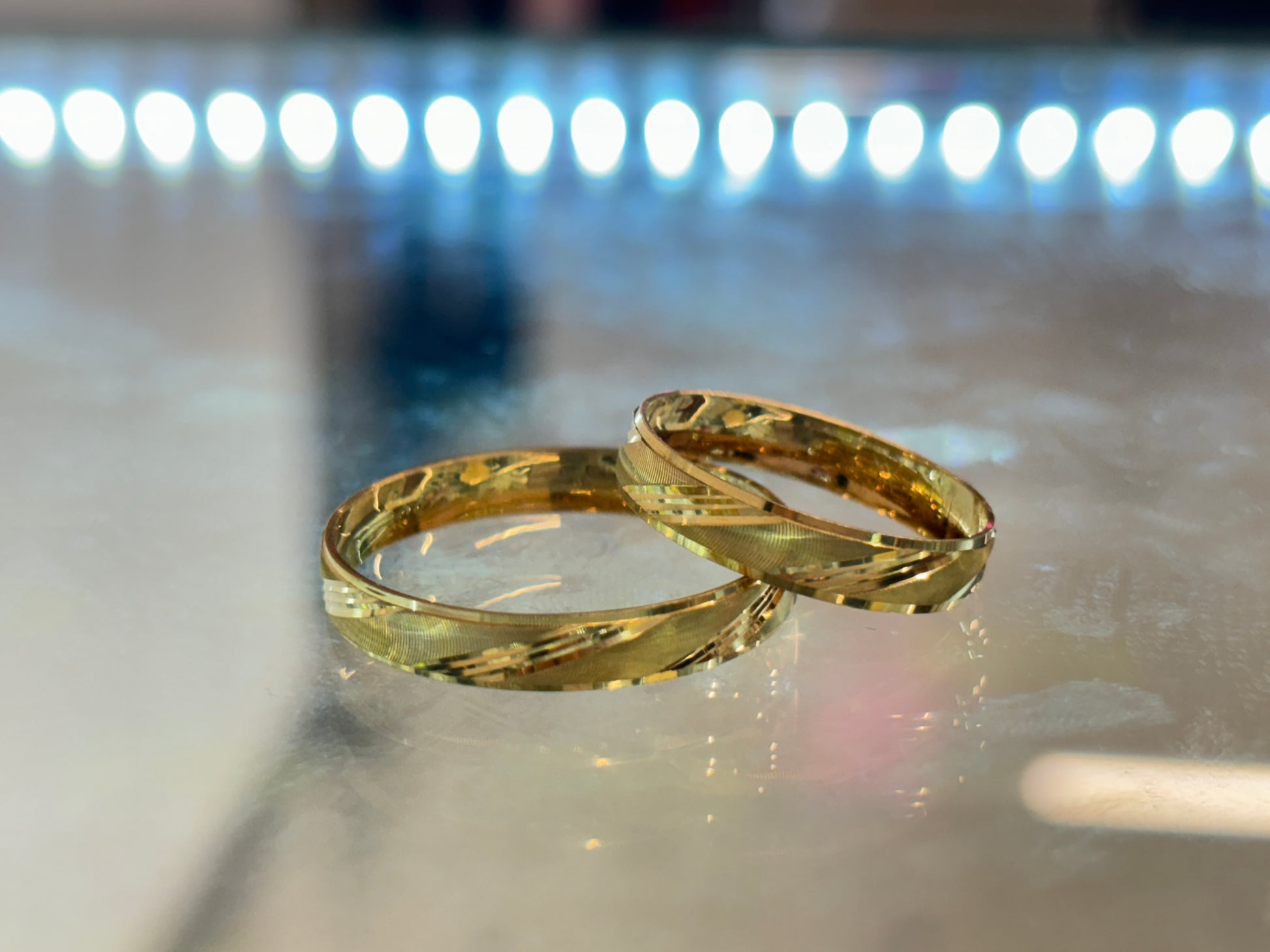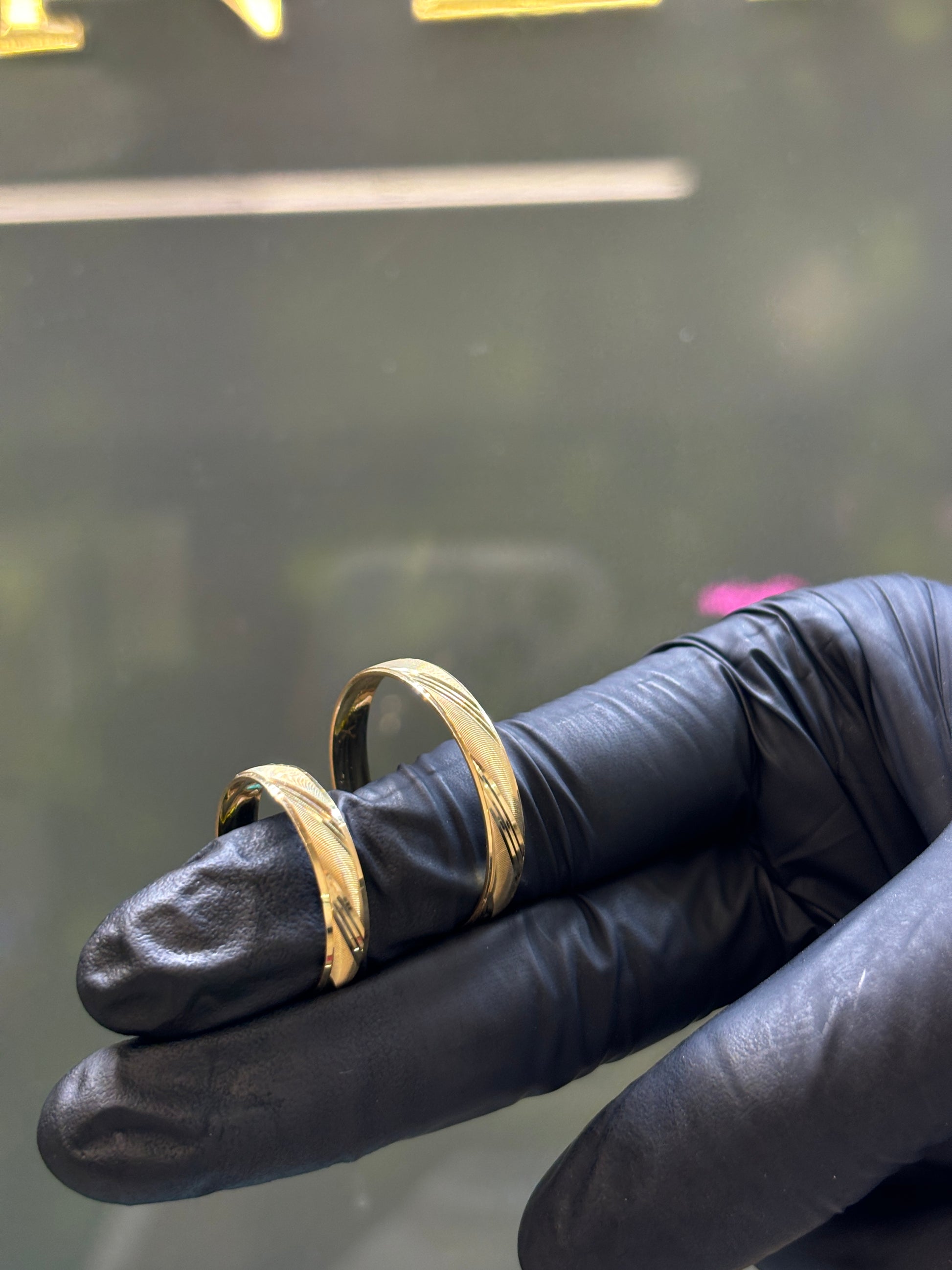 Argolla de oro 10k 4’mm ancho modelo diagonal.