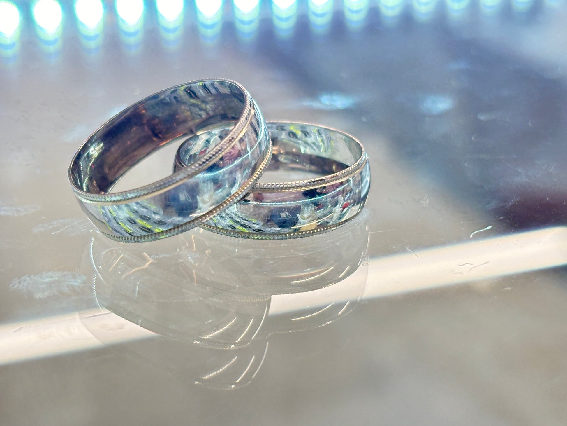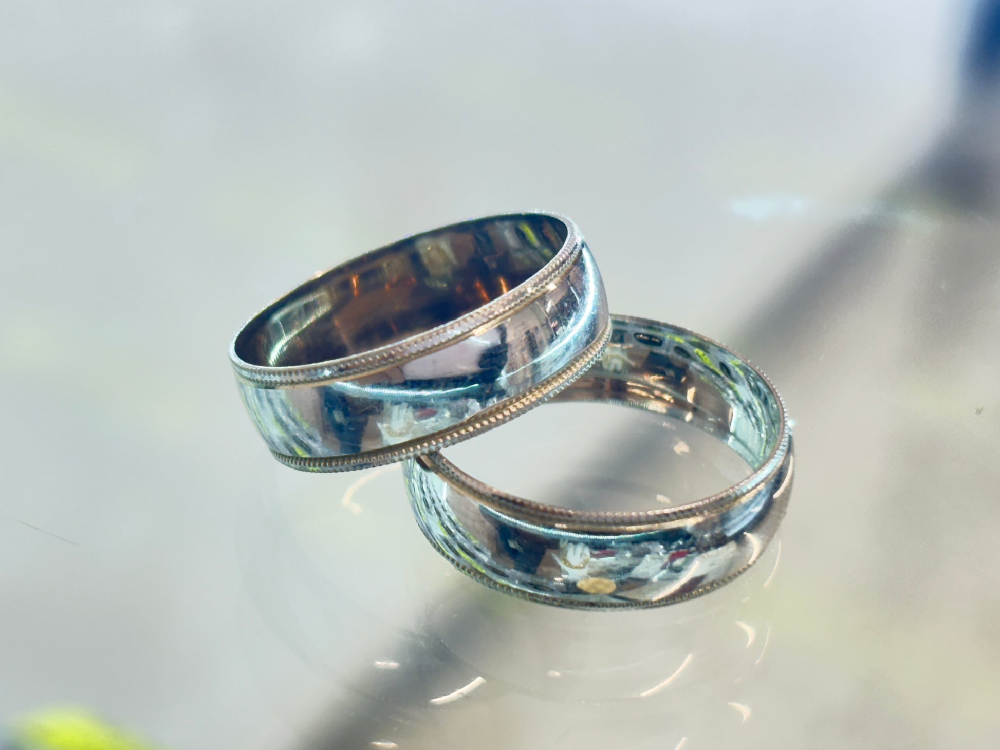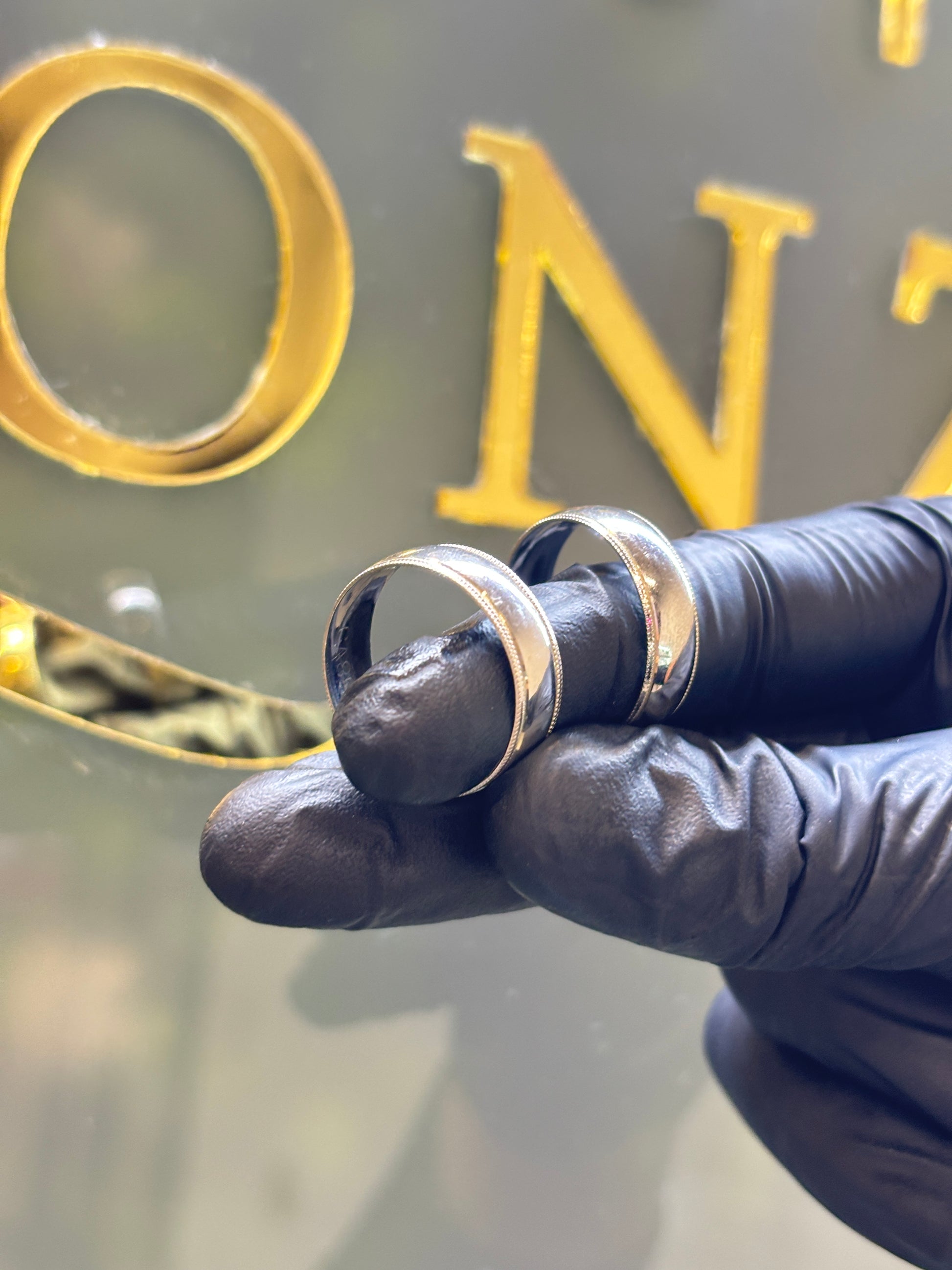 Argolla oro de 10k,6mm ancho modelo lisa con carrucha de oro blanco