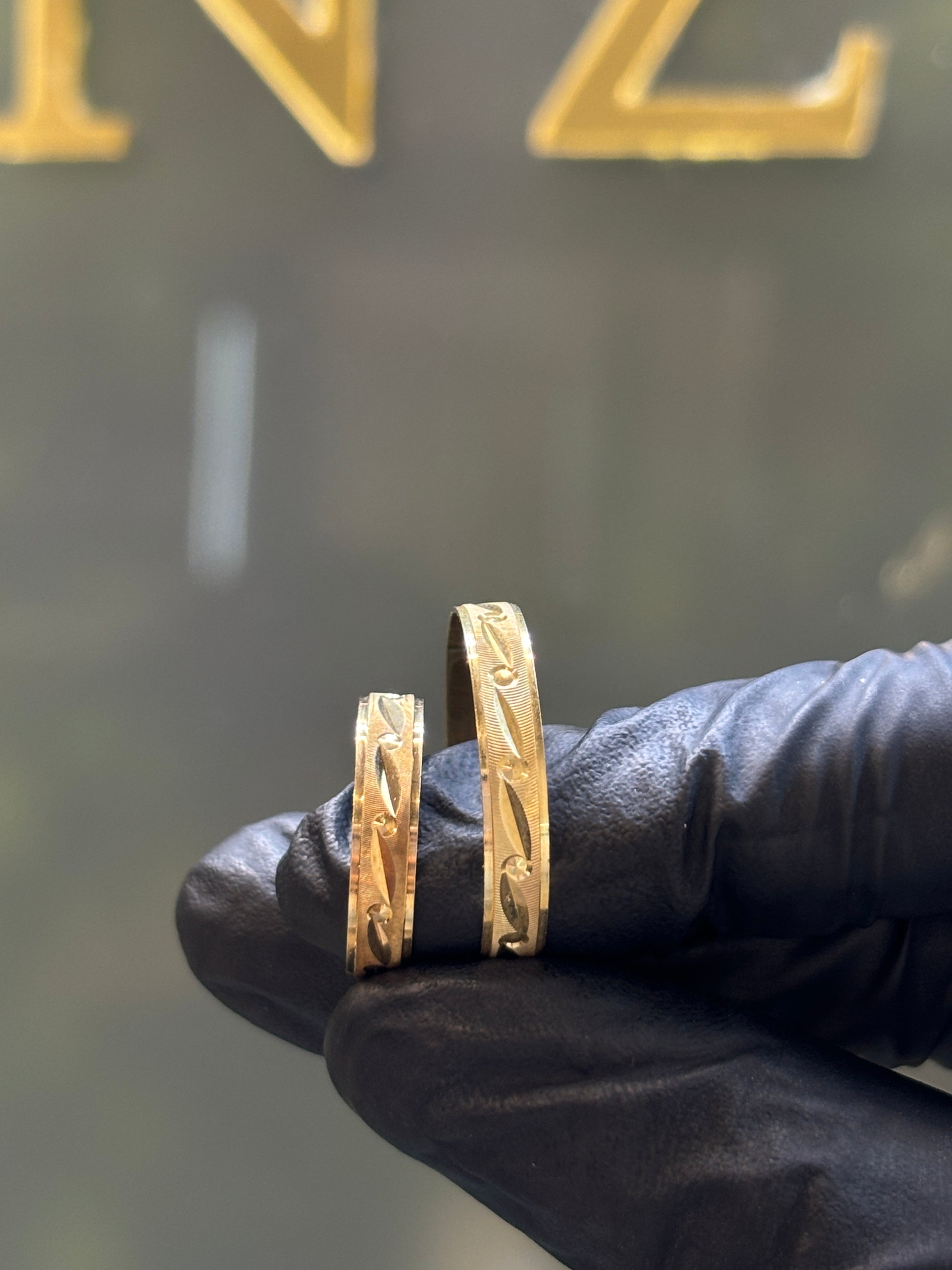 Argolla de oro de 10k 4mm ancho modelo rehilete.