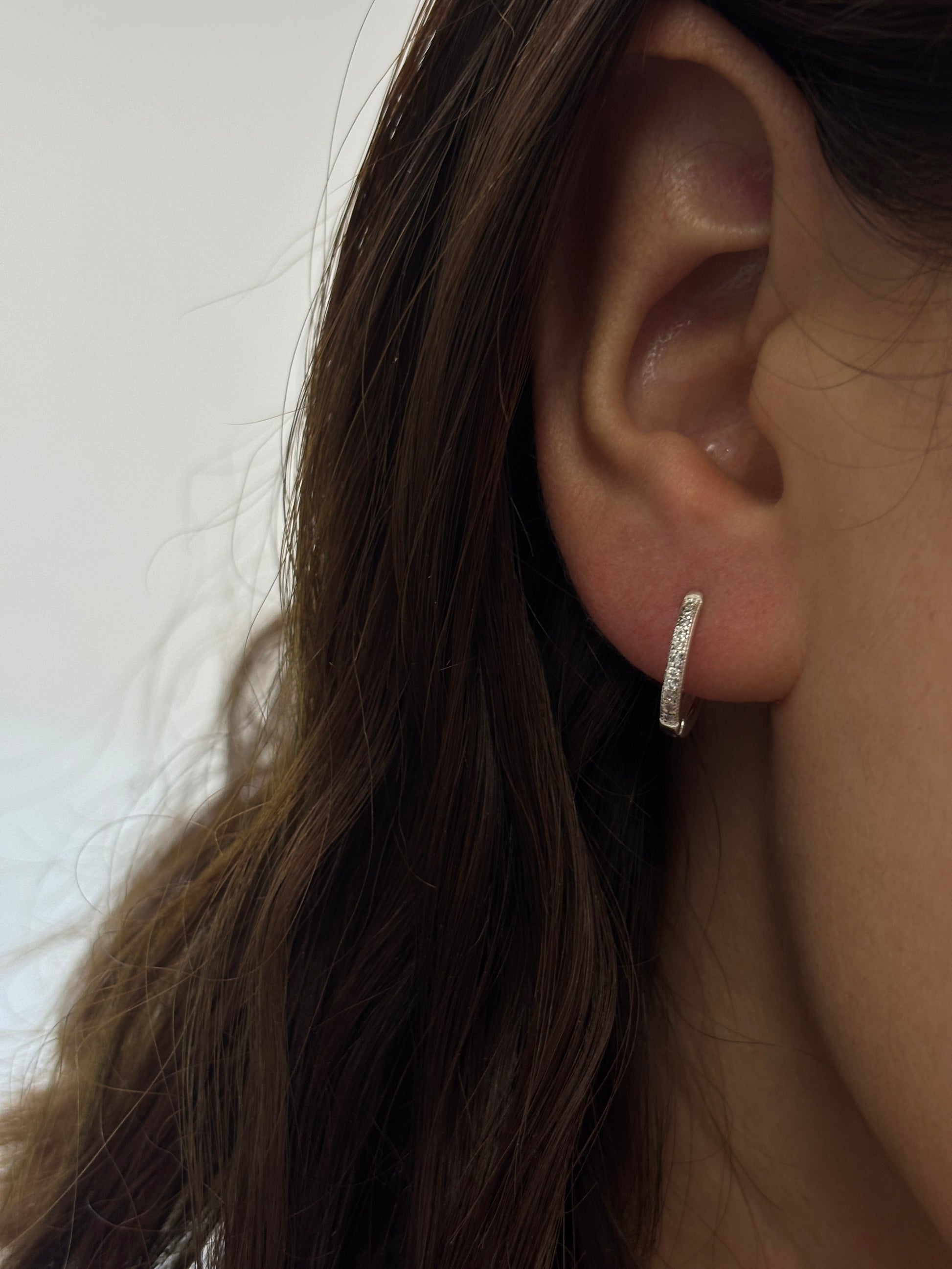 Arracada de plata ley 925 con circonia blanca de 1.2cm de diámetro