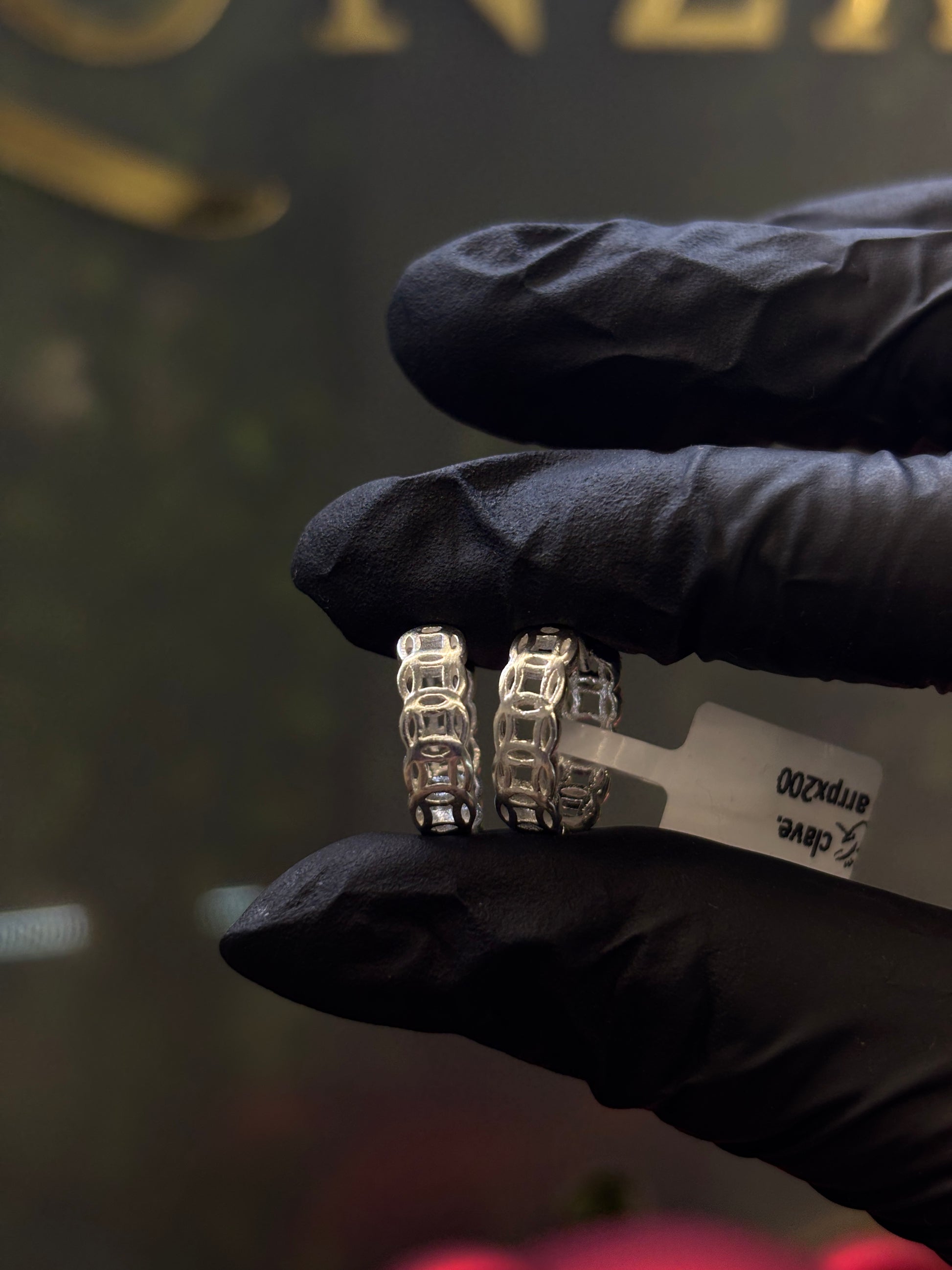 Arracada de plata 925 trenzada de 1.4cm de diámetro, con un peso de 2.9 gramos