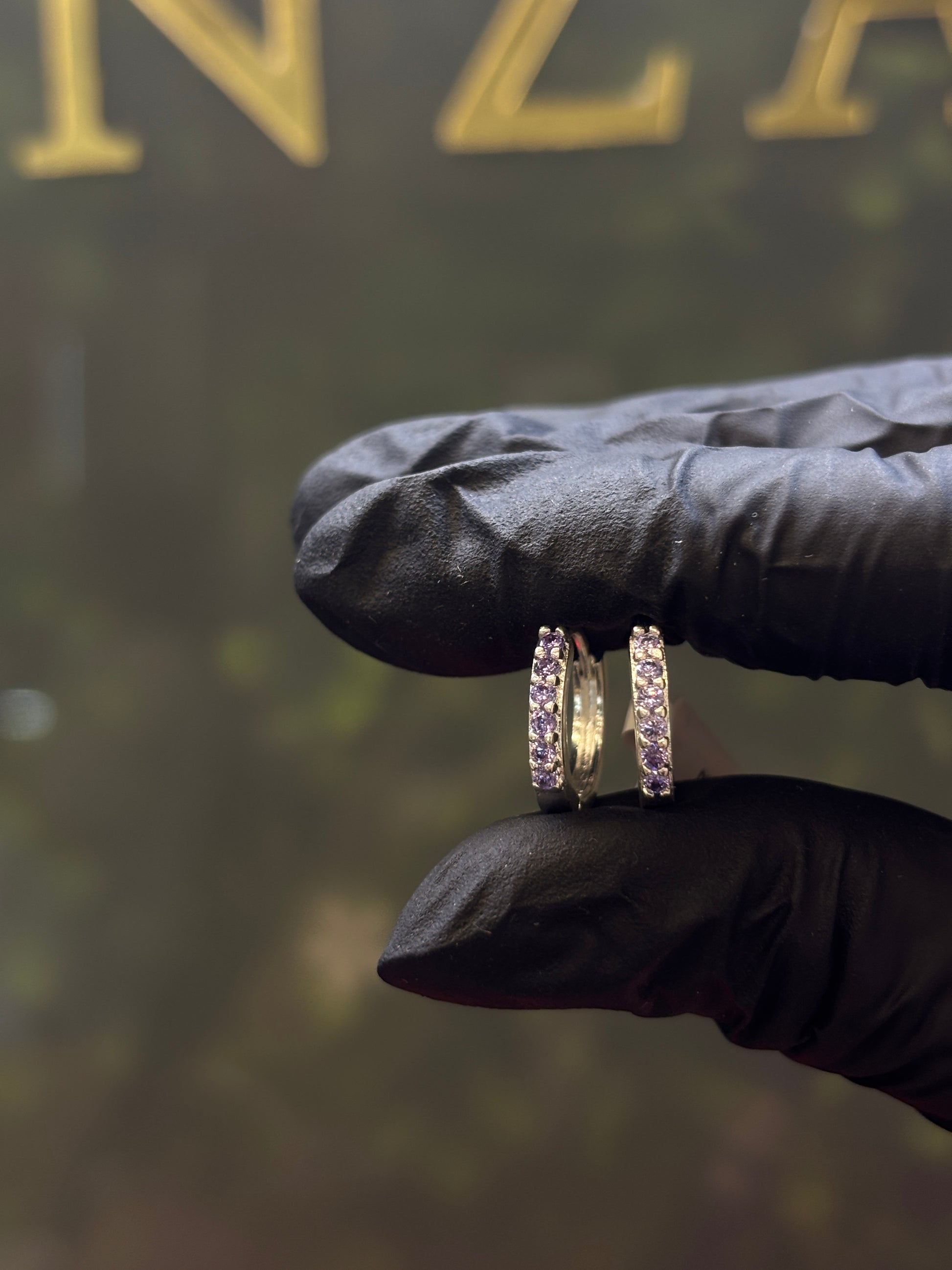 Arracada plata 925 con circonia morada de 1.4 cm diametro