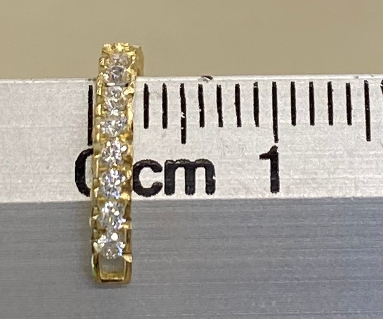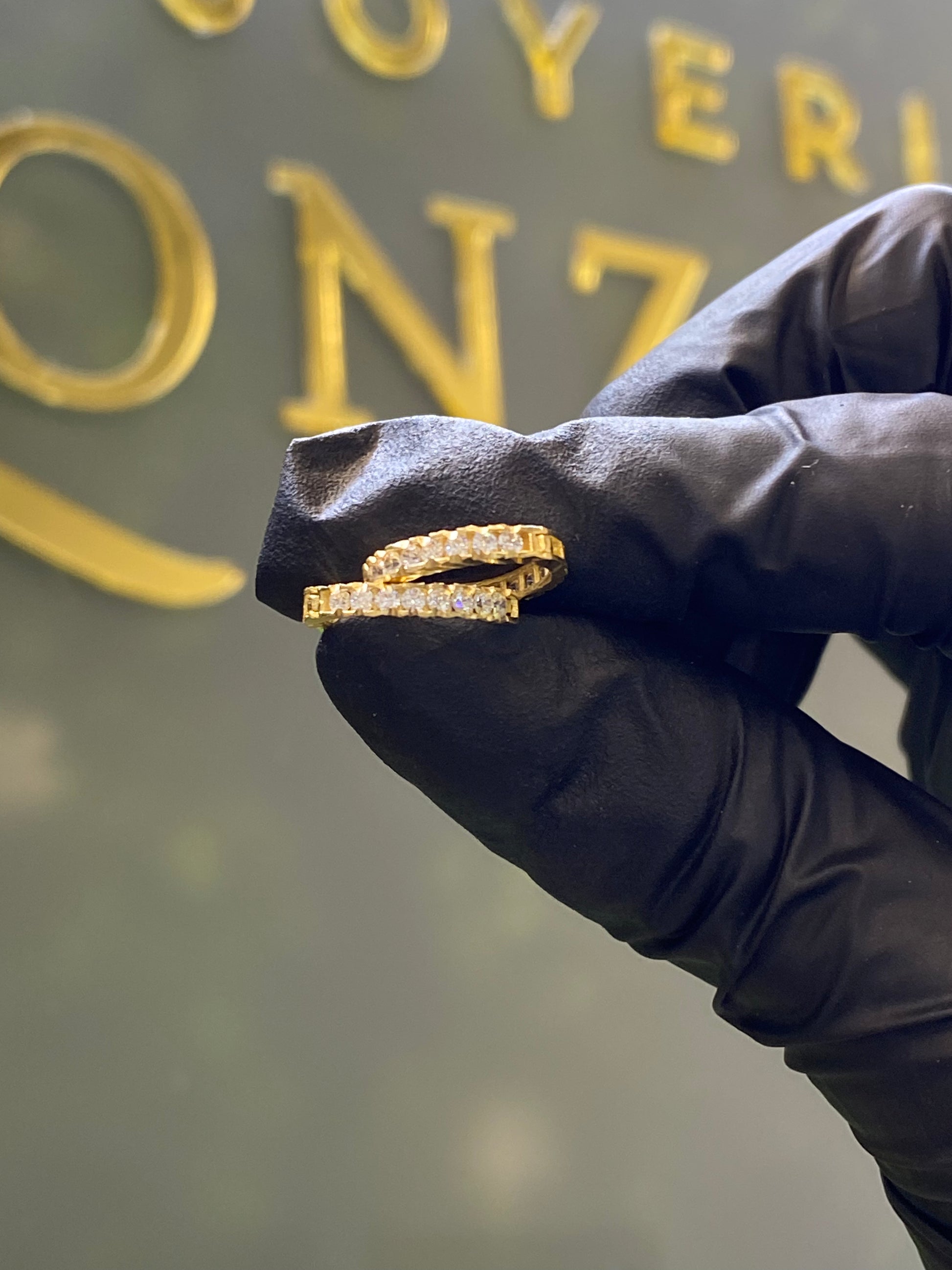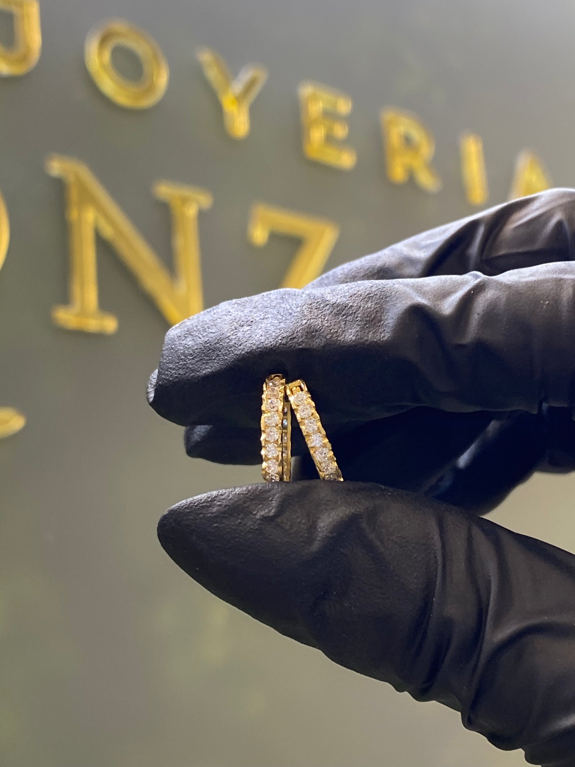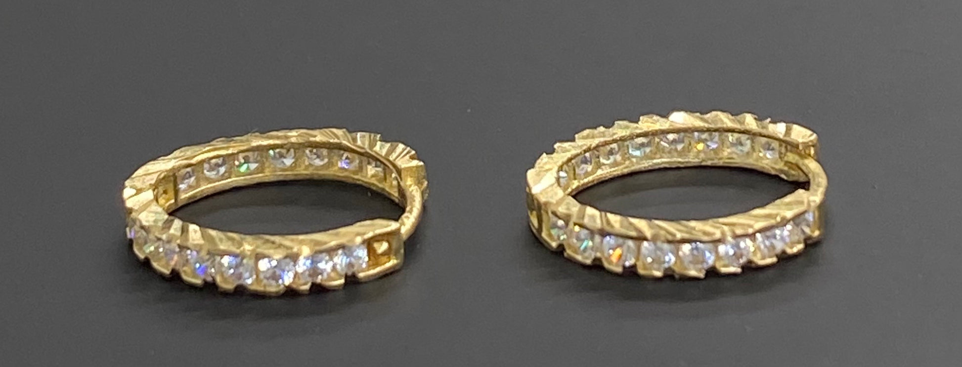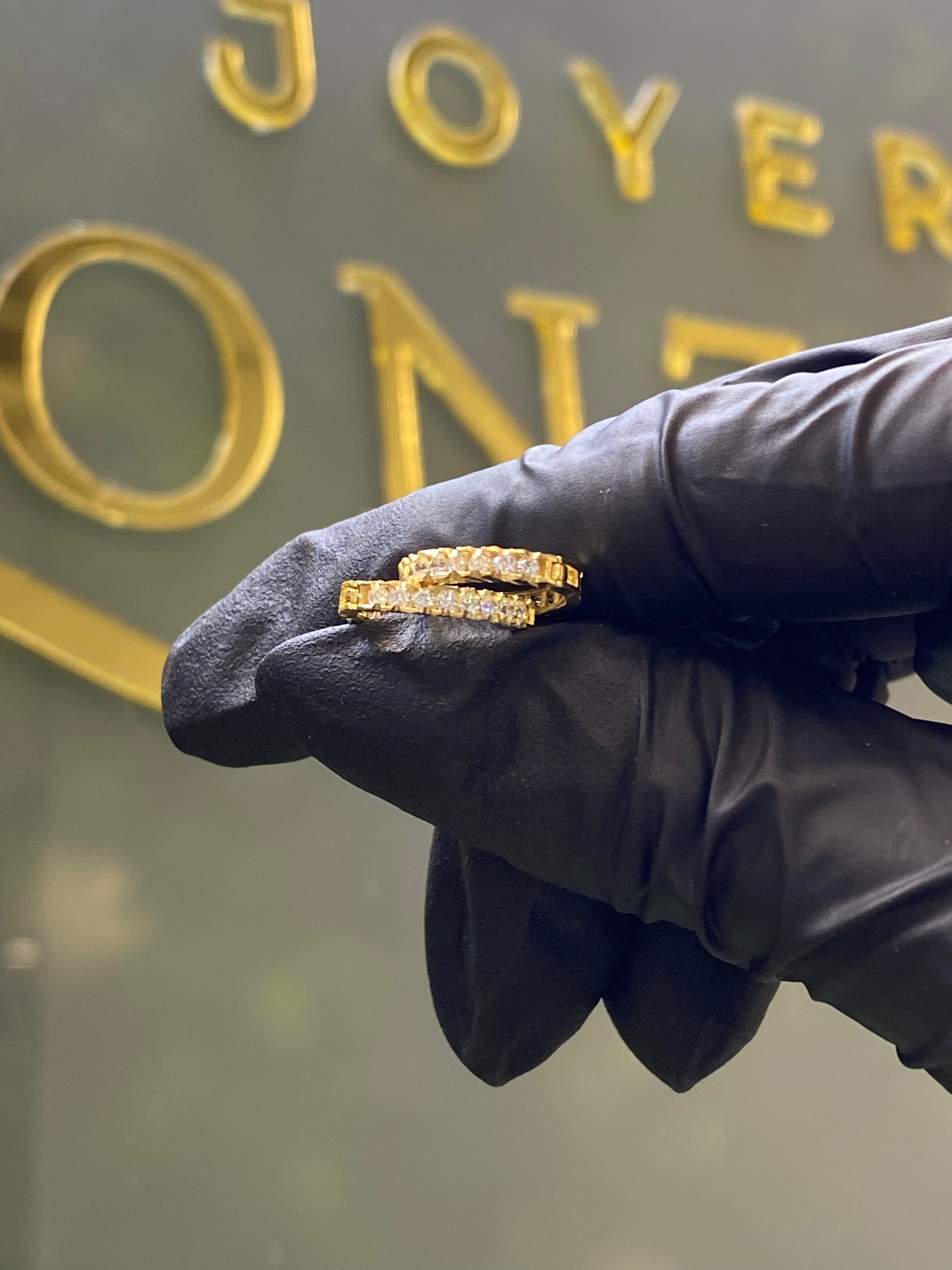 Arracadas de oro amarillo 10k, con un peso aproximado de 1.1 gramos, cuenta con circonias blancas y laterales facetados.
