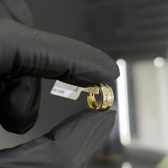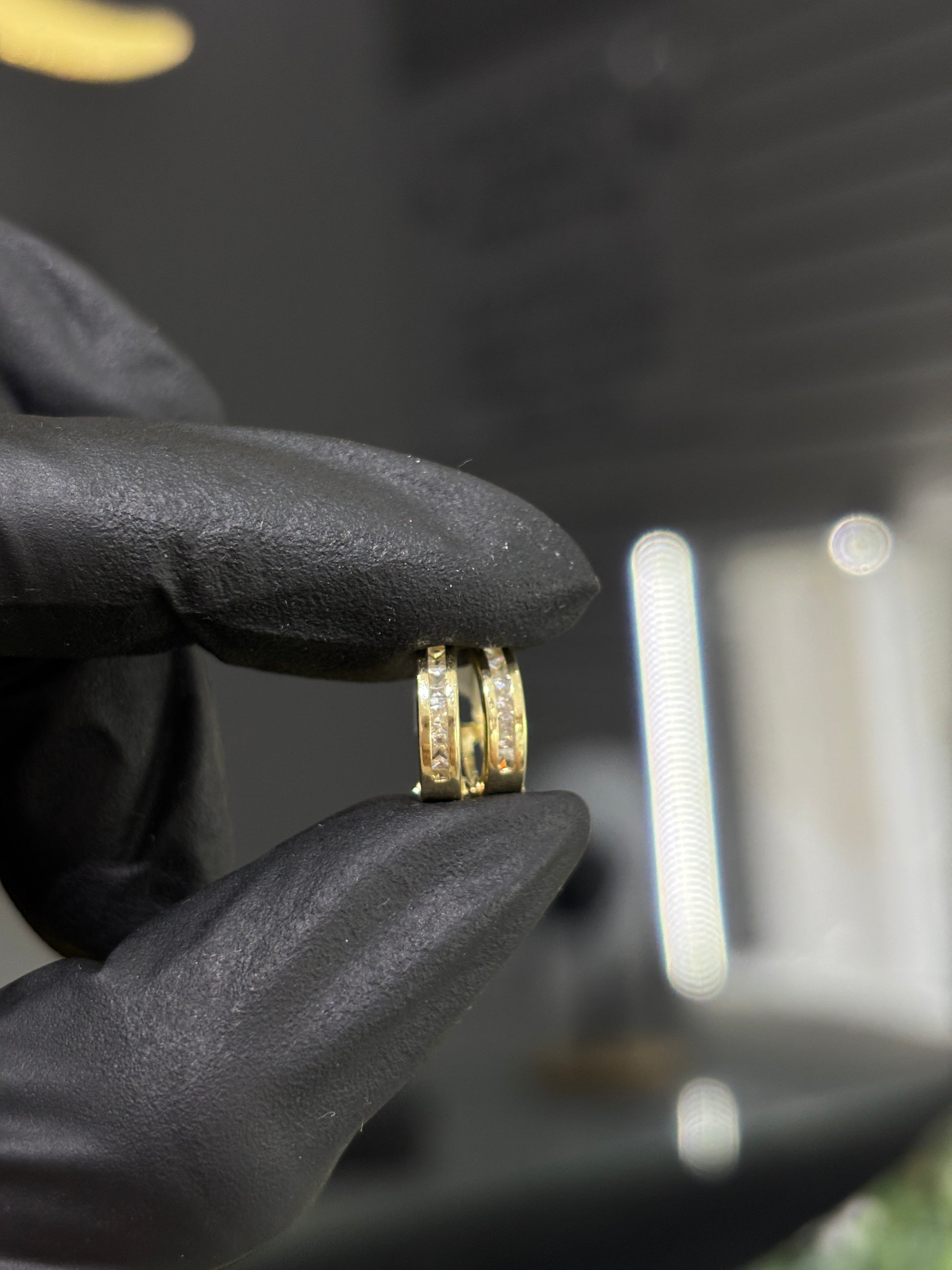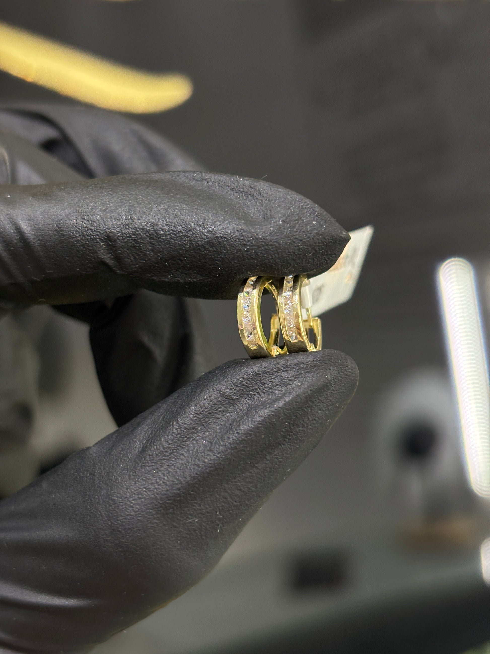Arracadas de oro de 10k de 9mm de diámetro, con circonias incrustadas.