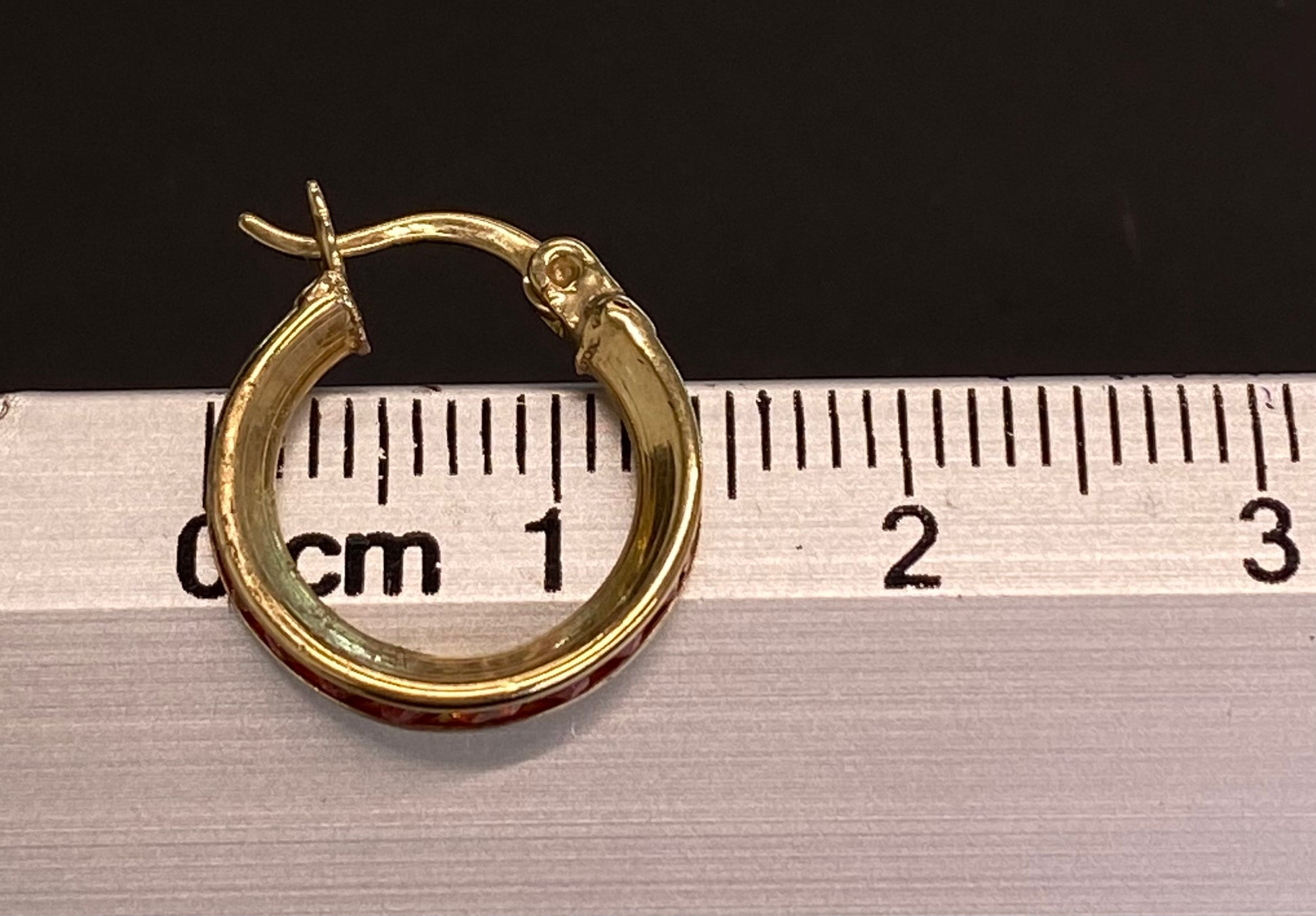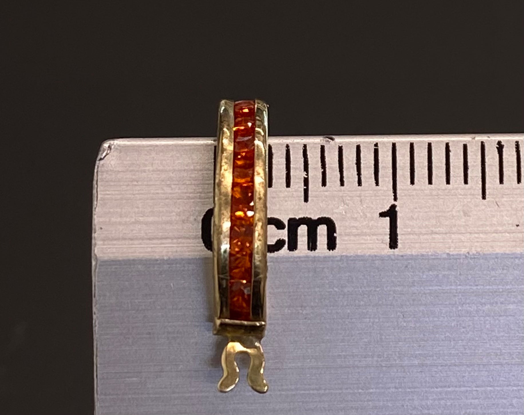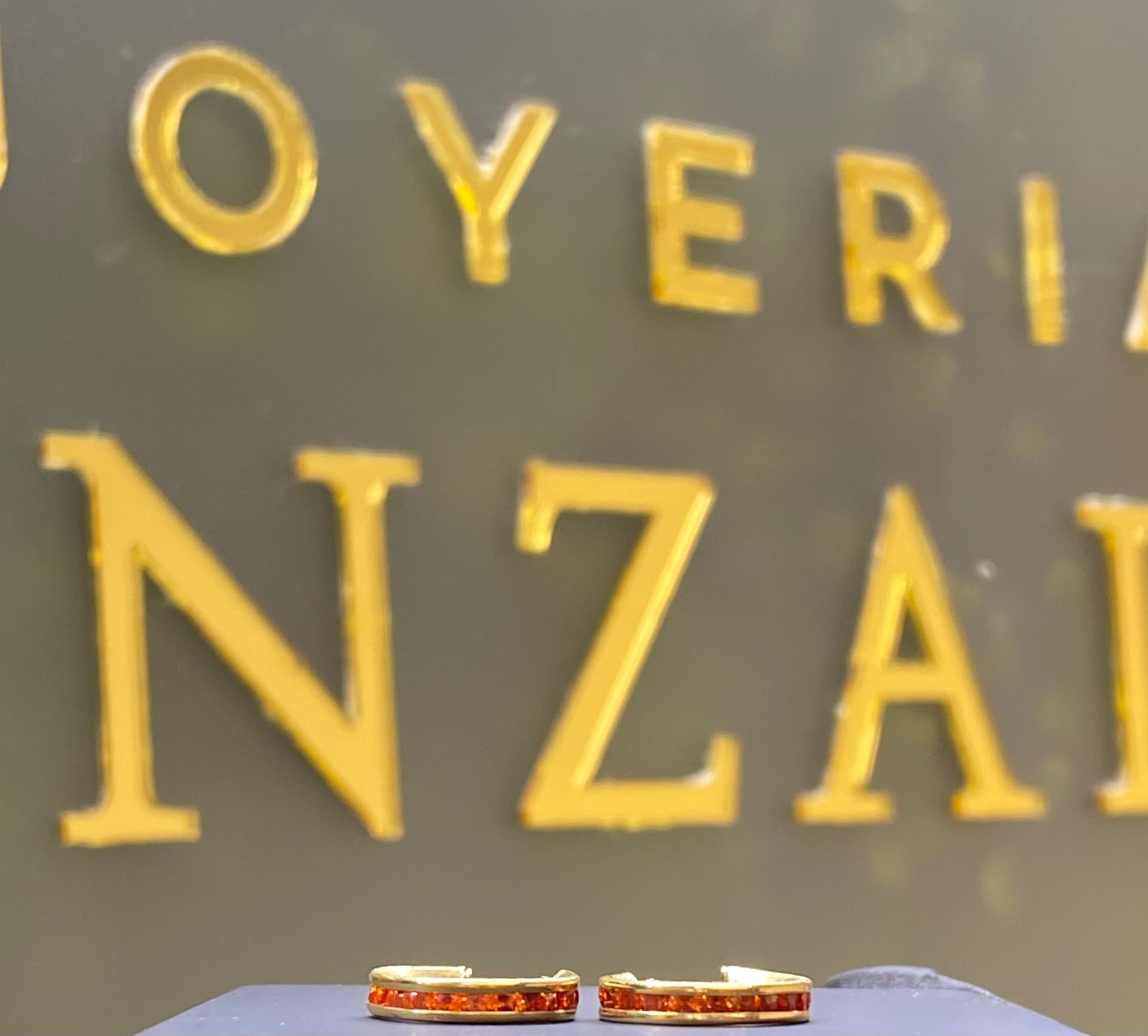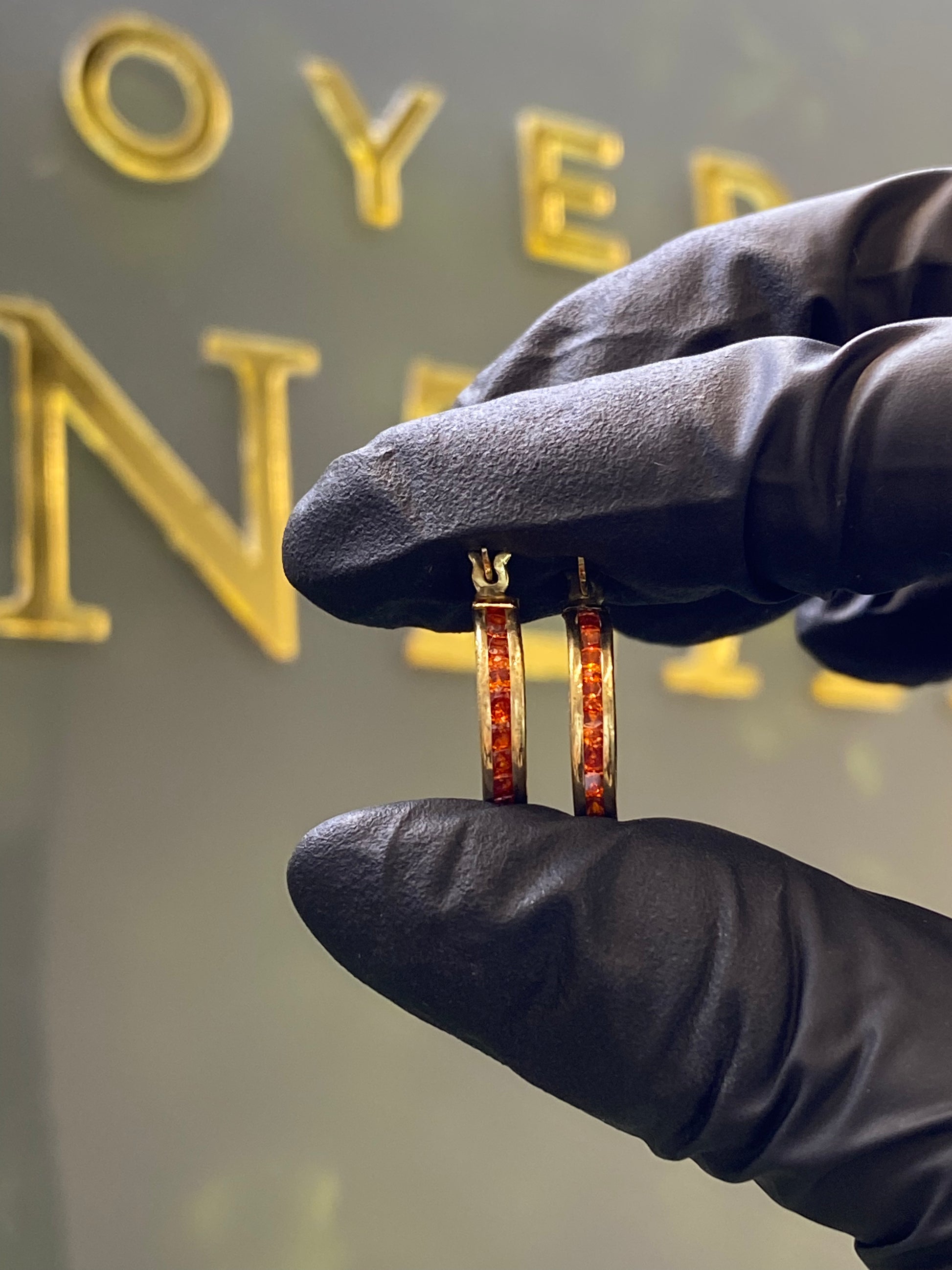 Arracadas de oro amarillo 10k, con un peso aproximado de 1.5 gramos, cuenta con circonias anaranjadas.