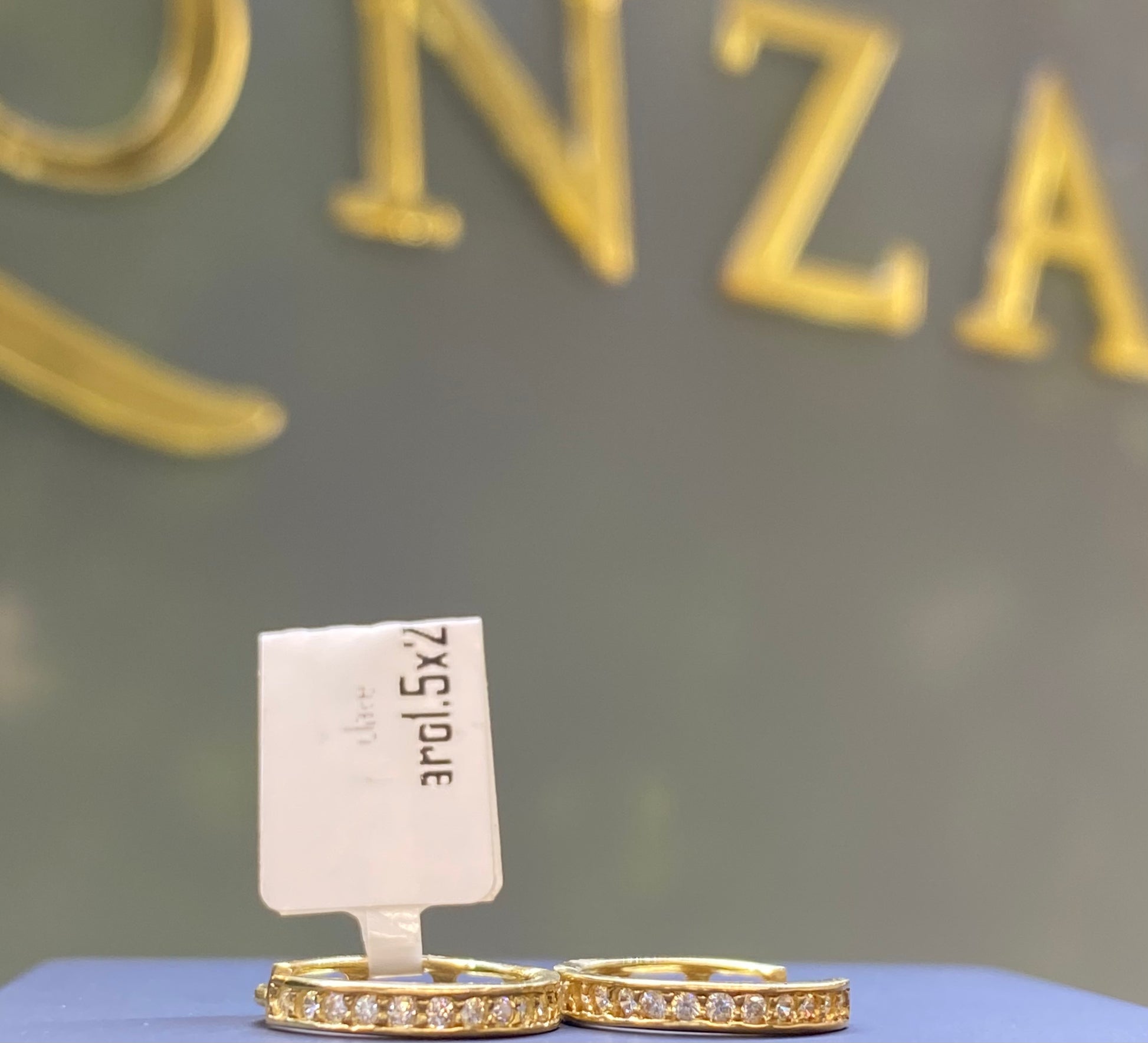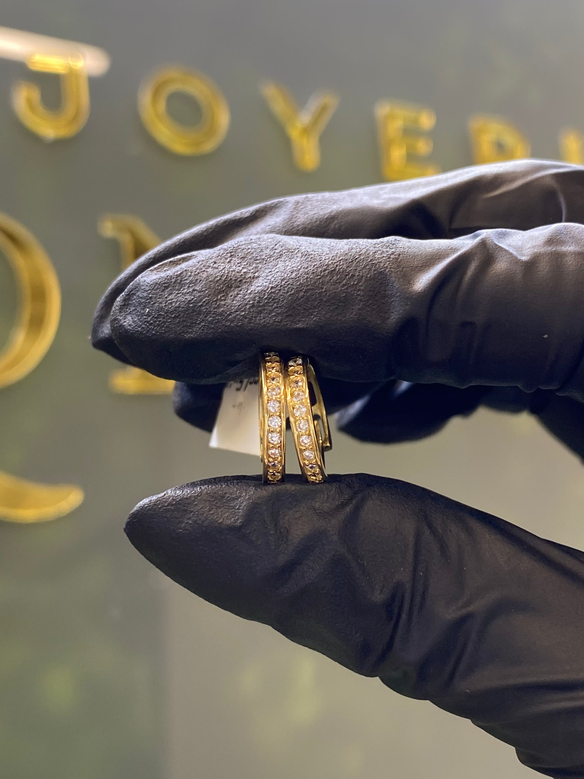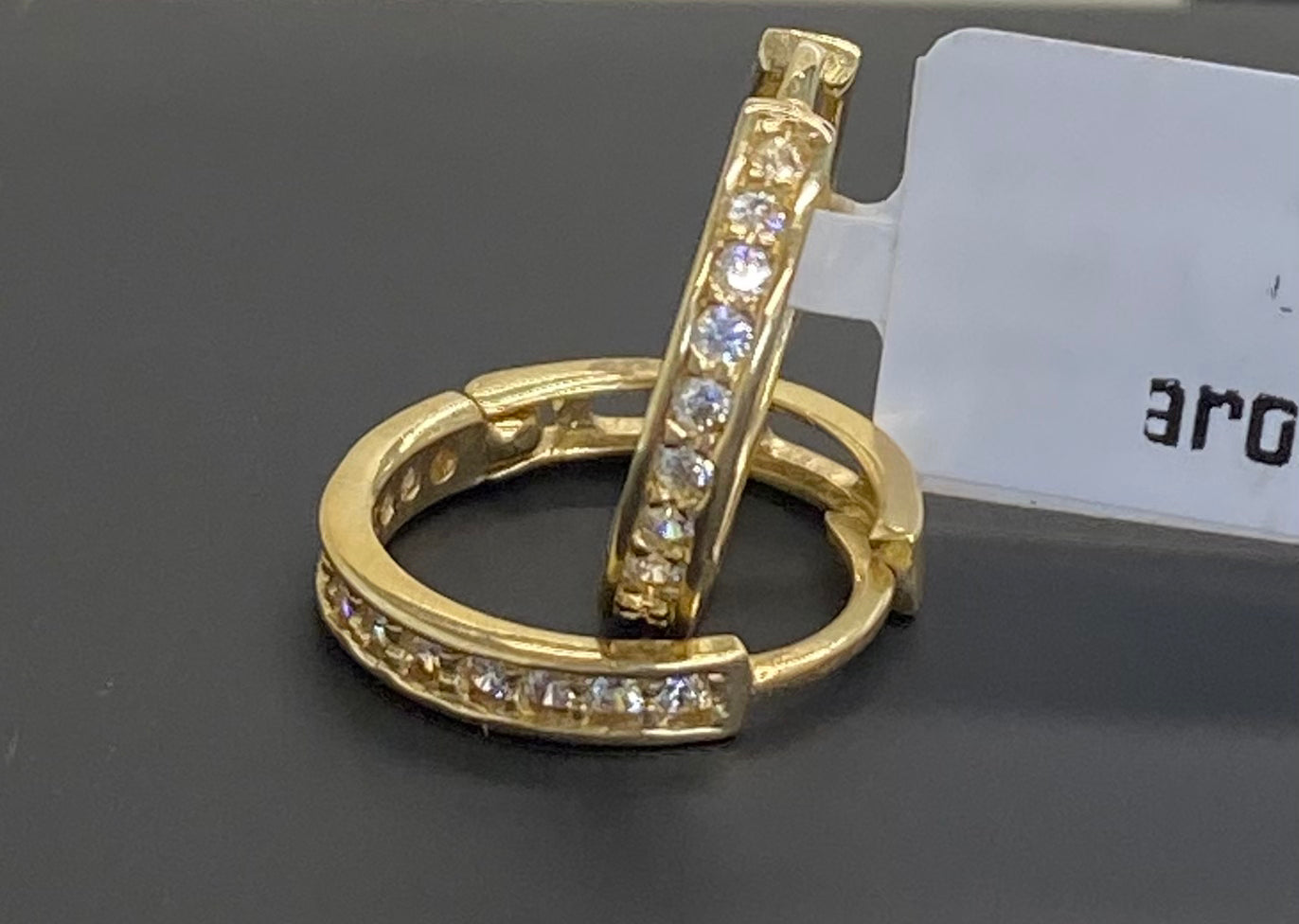 Arracadas de oro amarillo 10k, con un peso aproximado de 1.5 gramos, cuenta con circonias blancas.