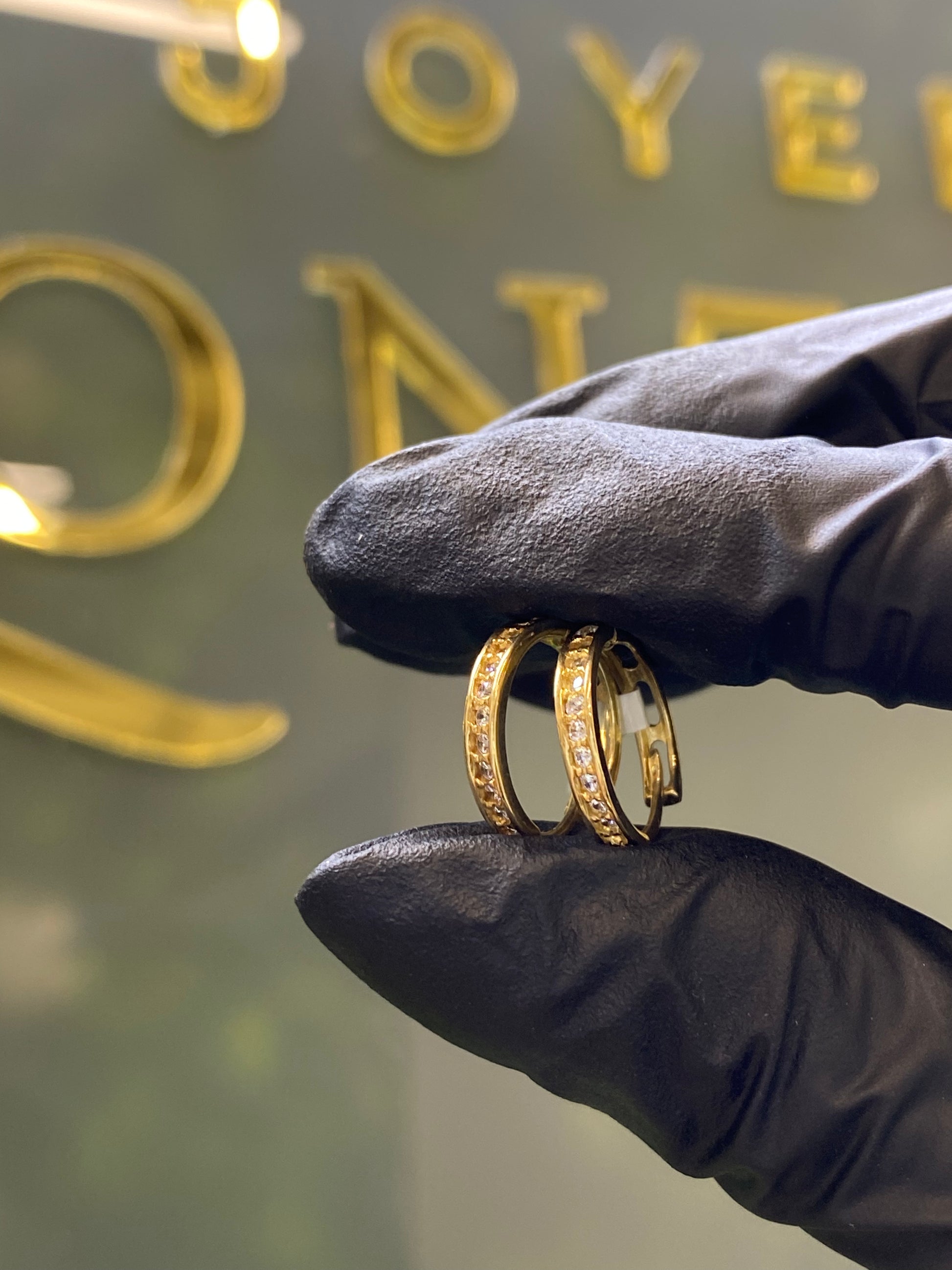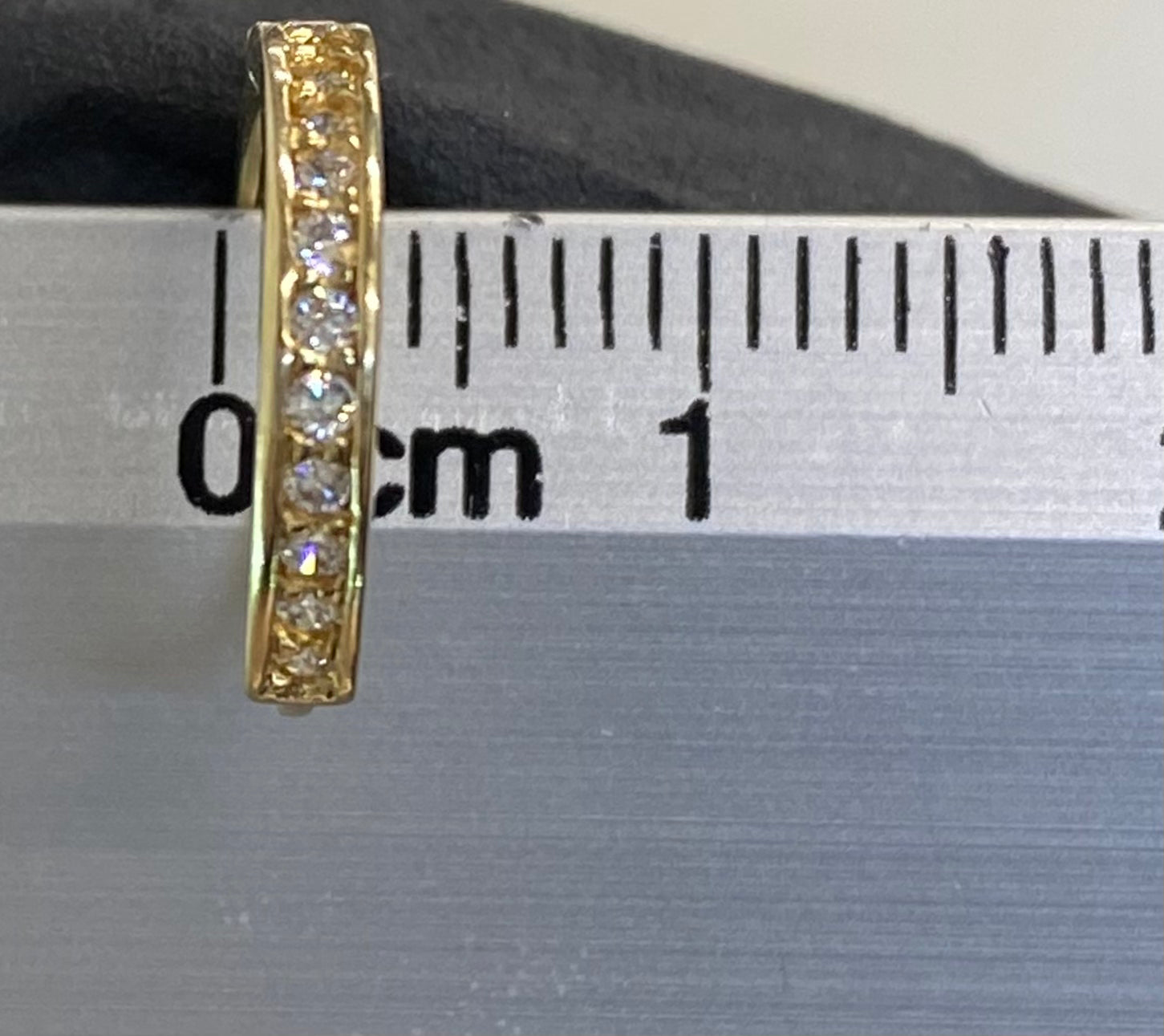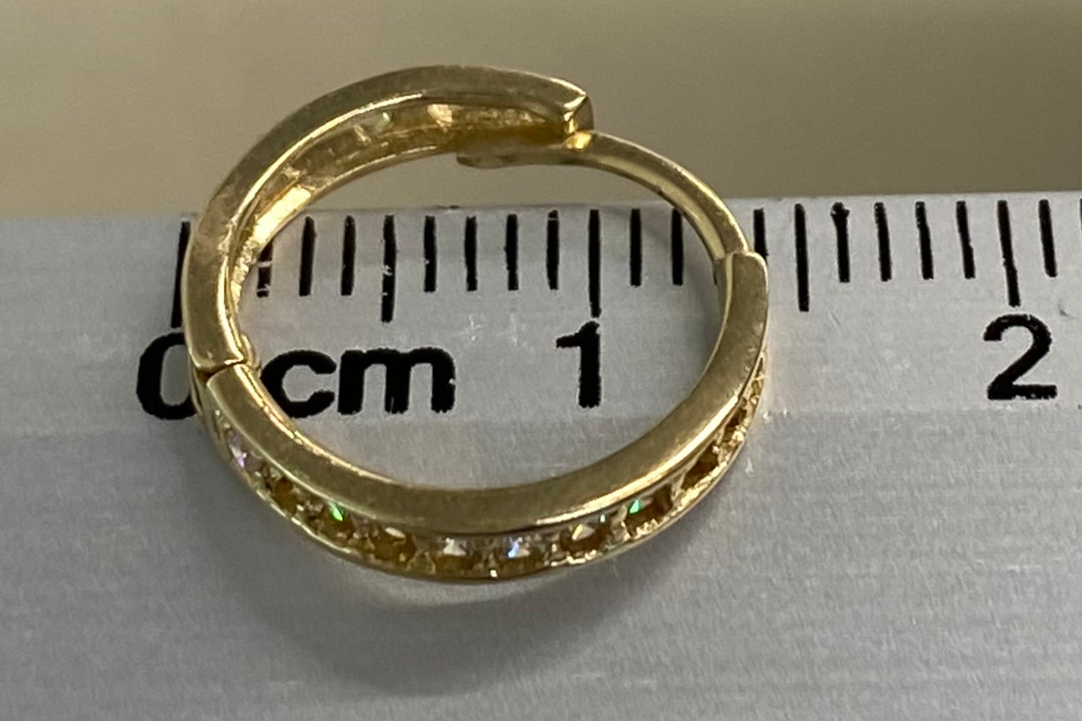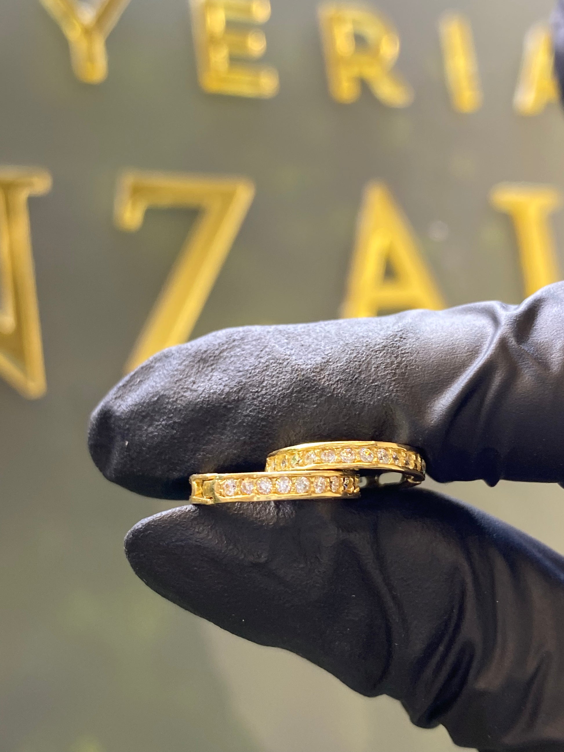 Arracadas de oro amarillo 10k, con un peso aproximado de 1.5 gramos, cuenta con circonias blancas.