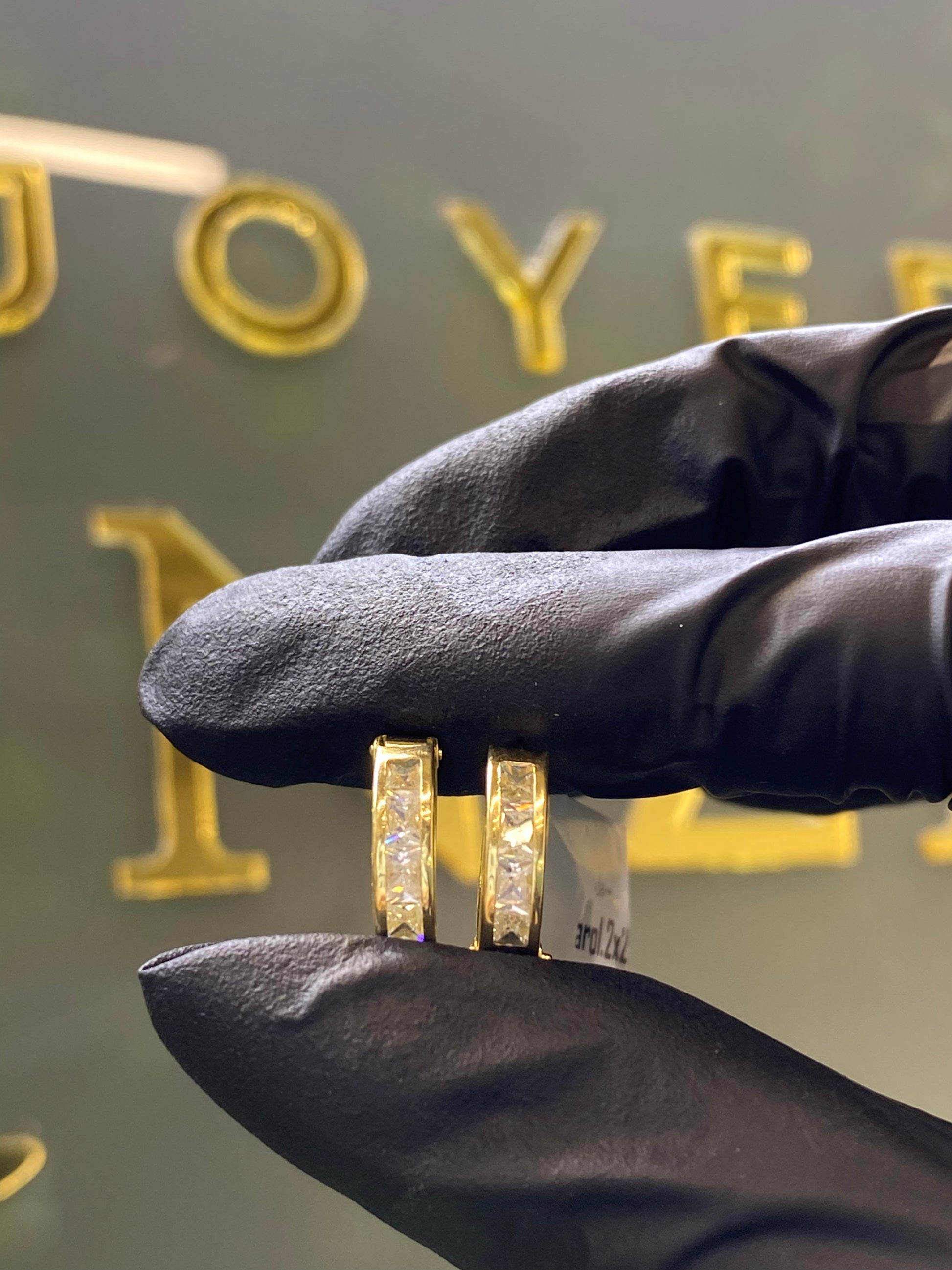 Arracadas de oro amarillo 10k, con un peso aproximado de 1.2 gramos, cuenta con circonias blancas.