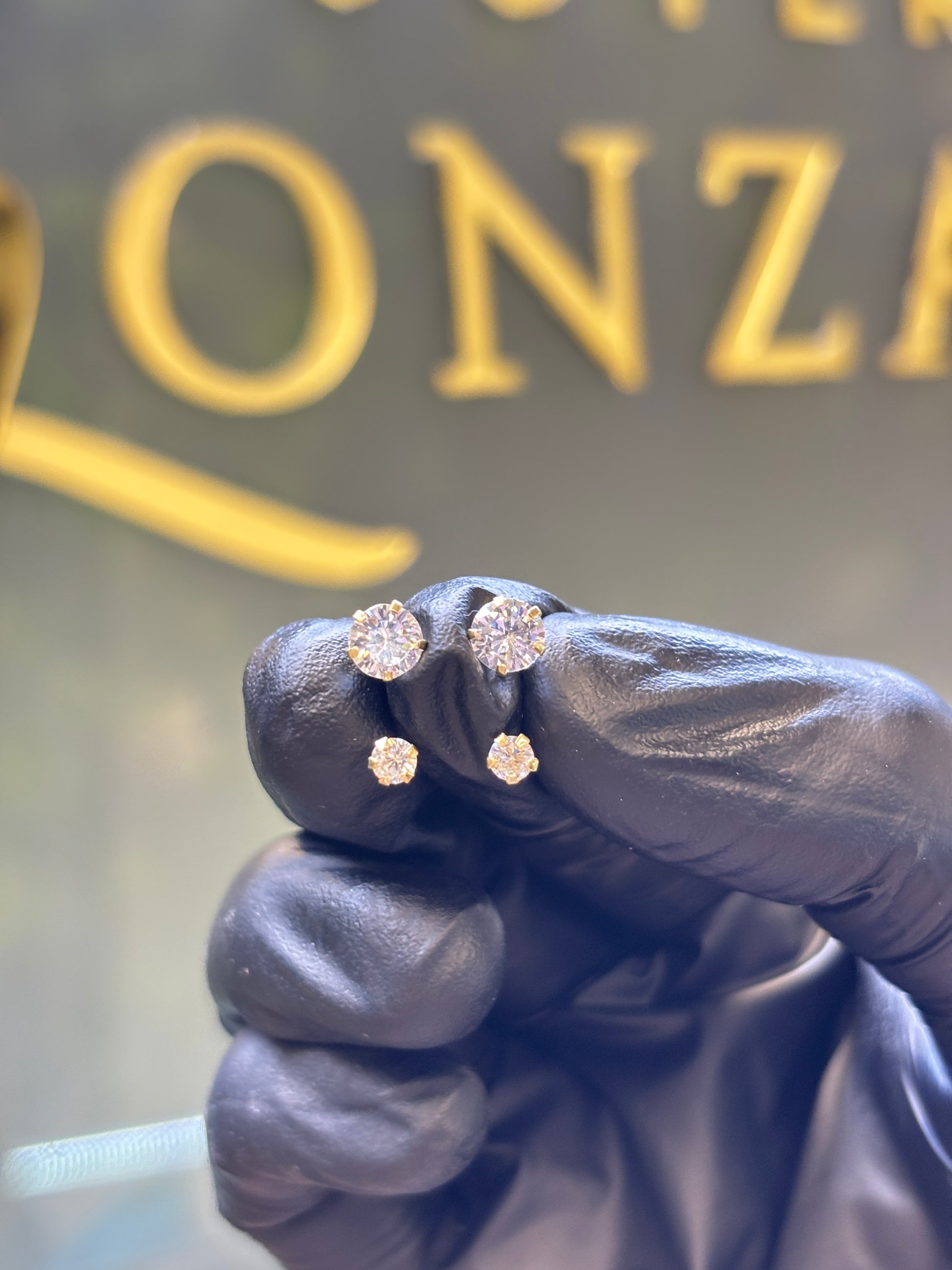 Broquel de oro de 10k con circonia blanca de medida de imagen, es un broquel de teléfono