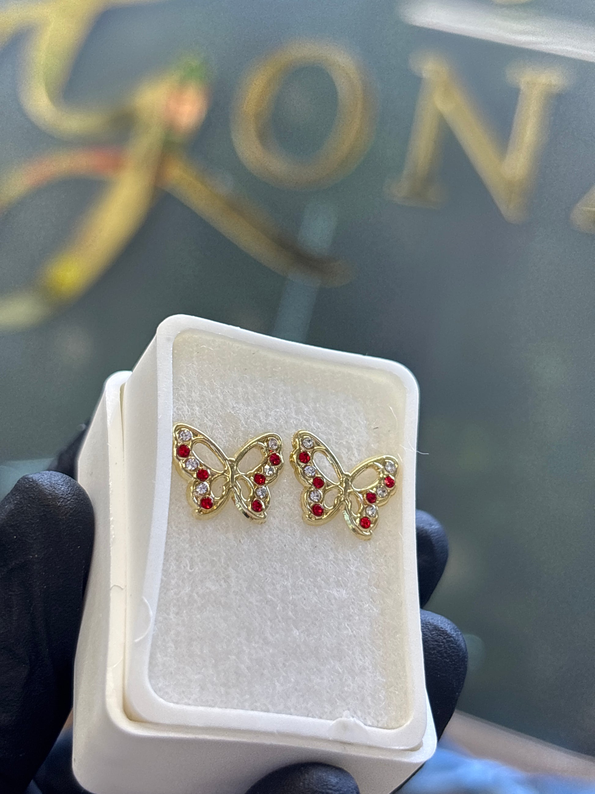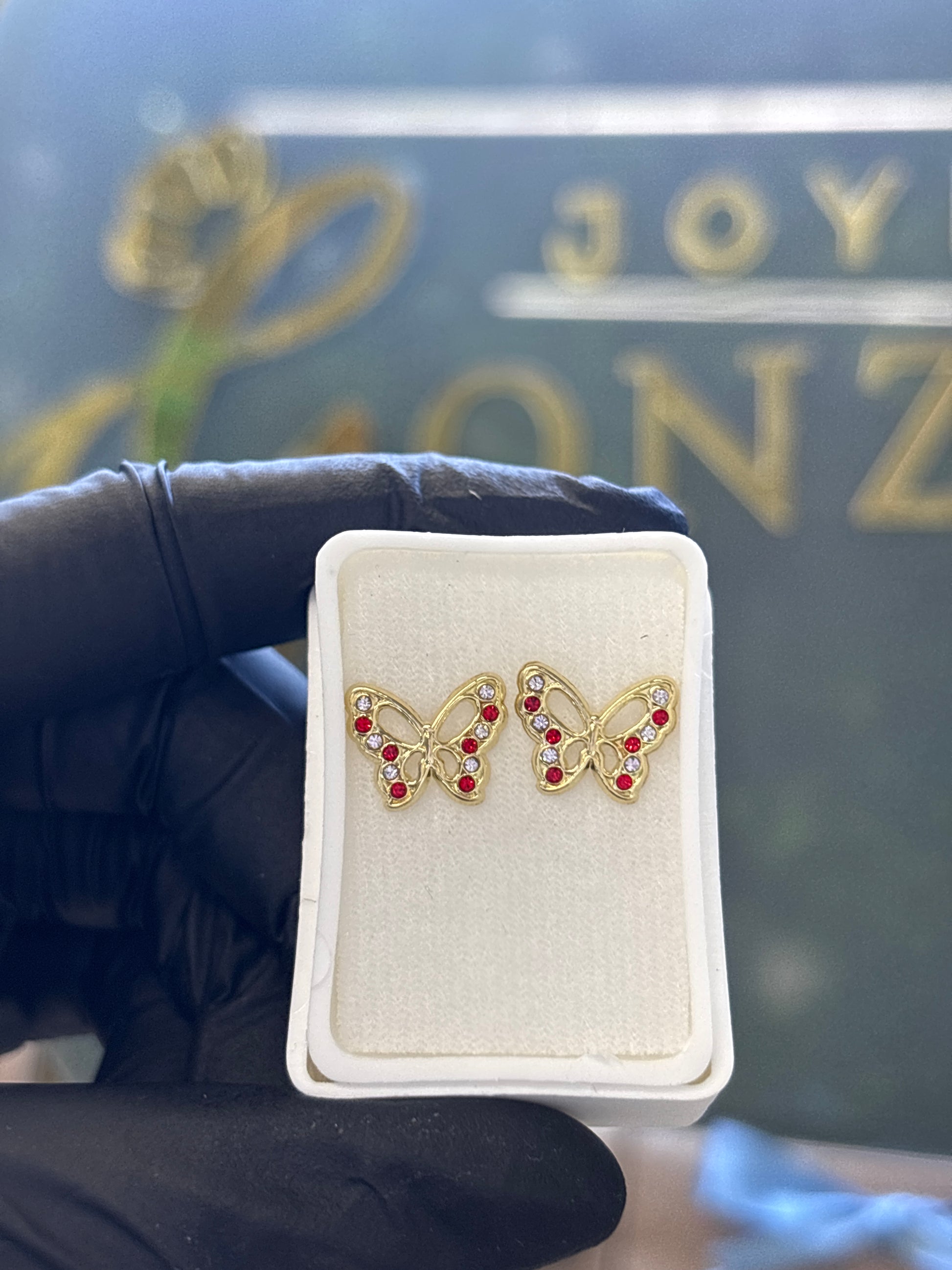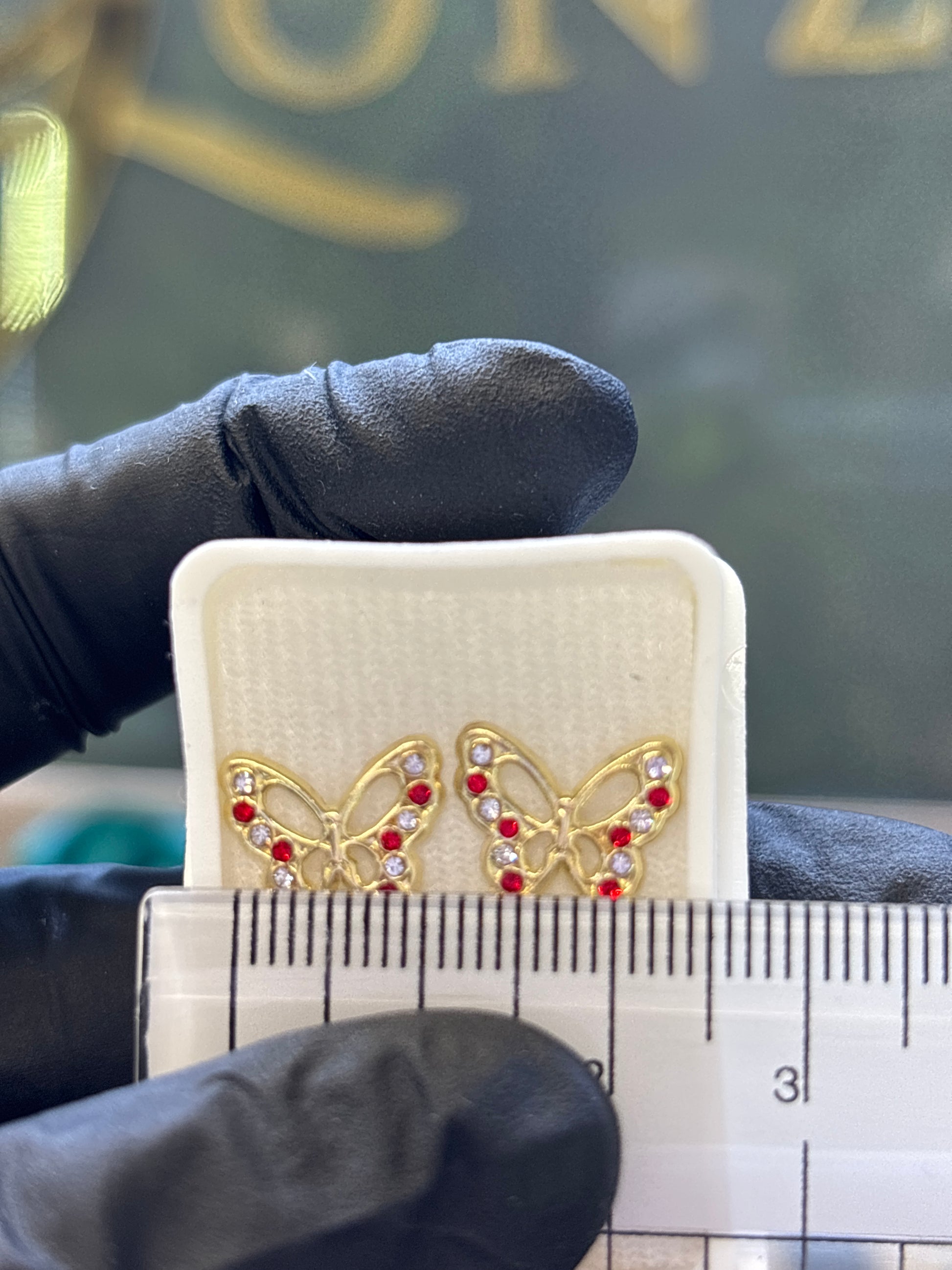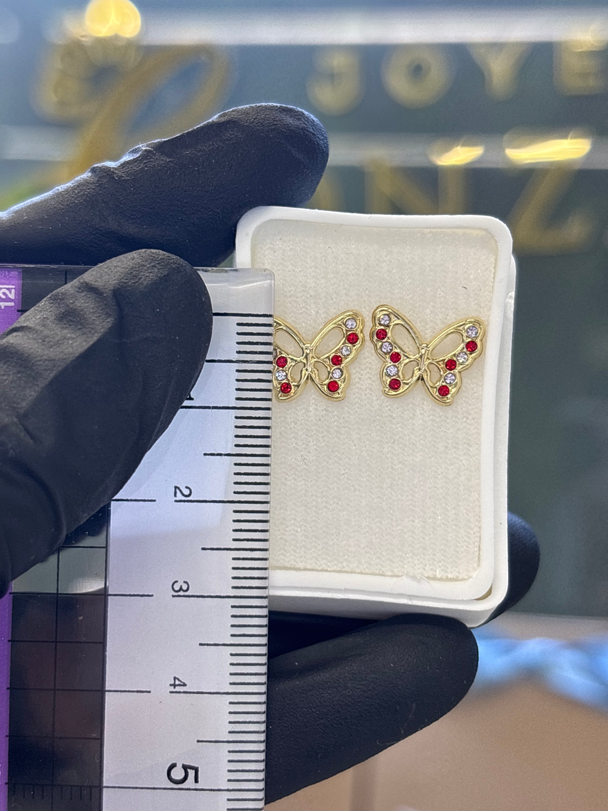 Broquel de oro de 10k con piedras circonias minis blanca y roja de las medidas de la imagen de referencia