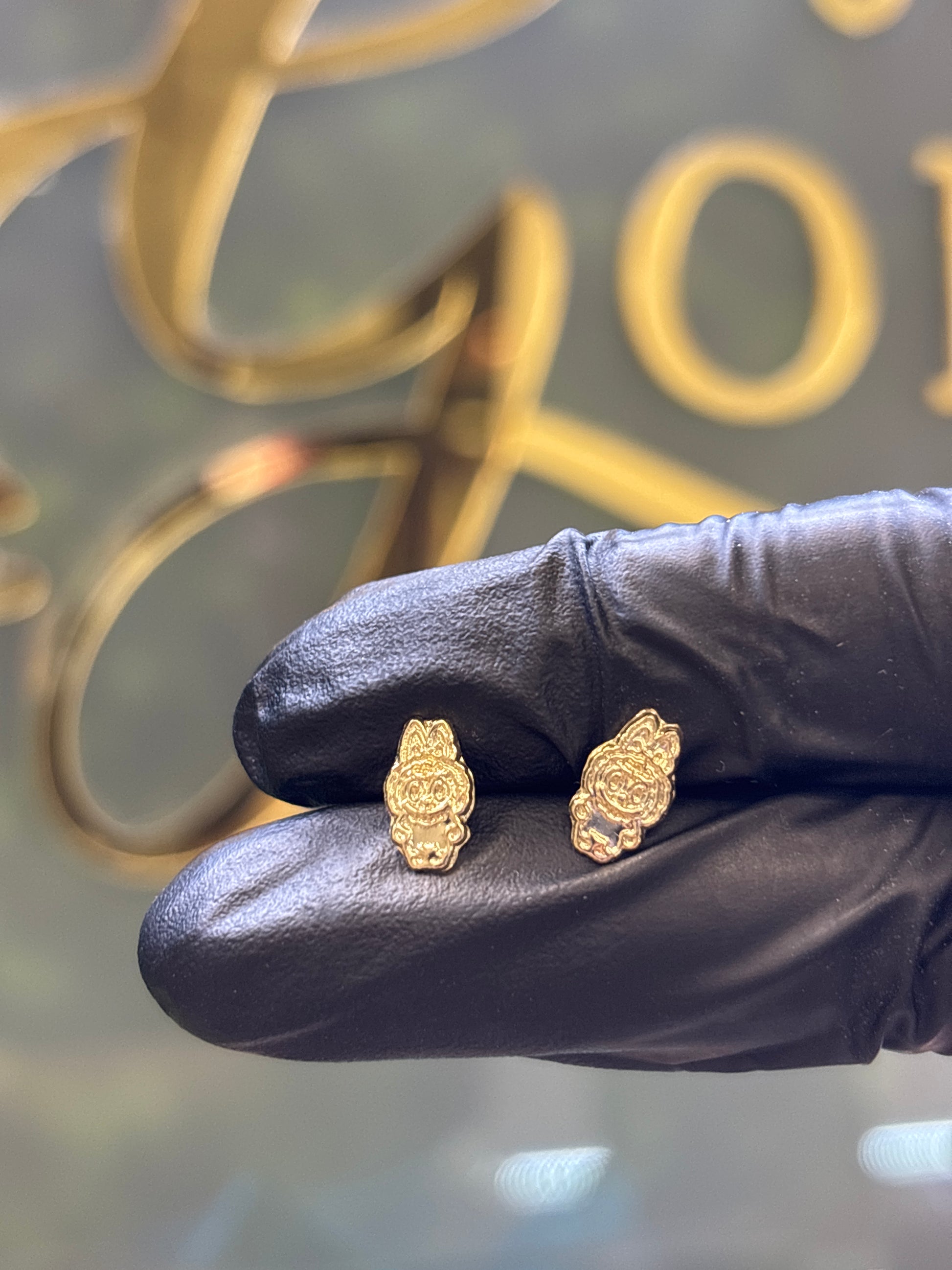 Broquel de oro de 10k ‘labubu’ con bolita atrás