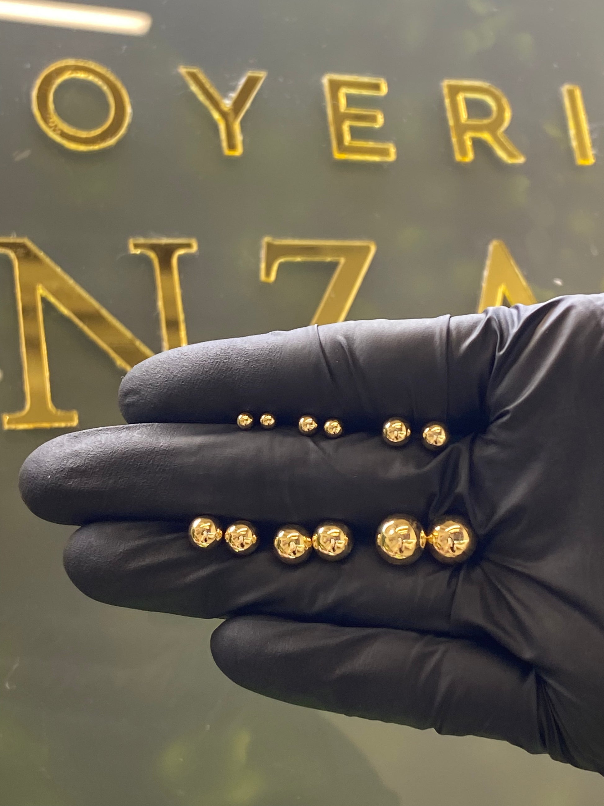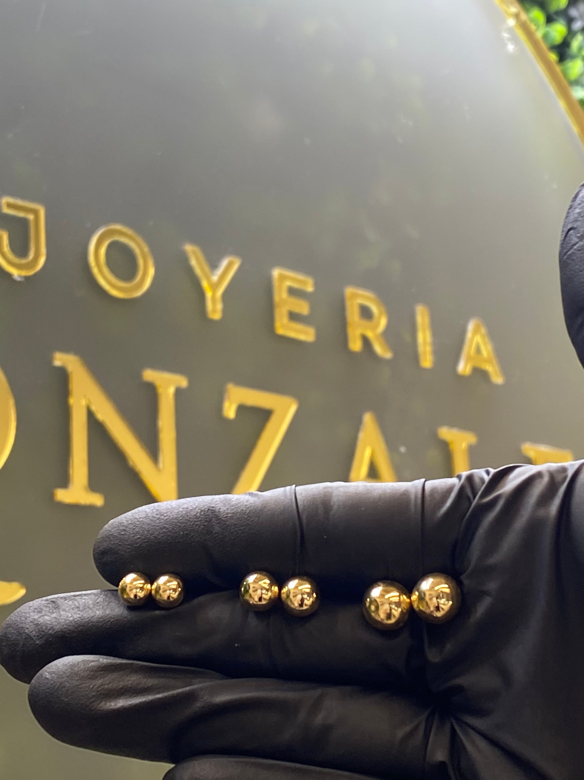 Broquel de oro amarillo 10k, en forma de bolita.
