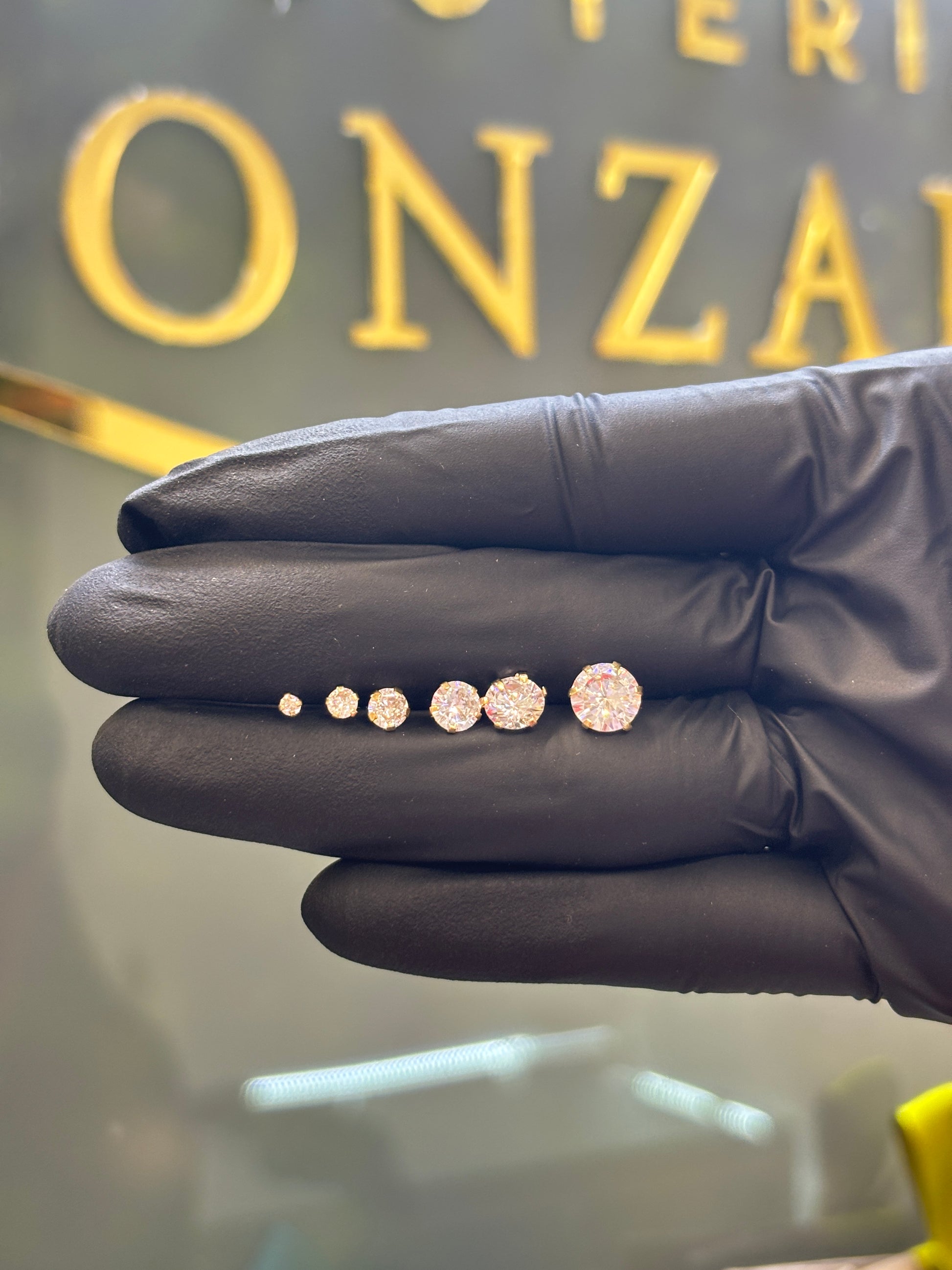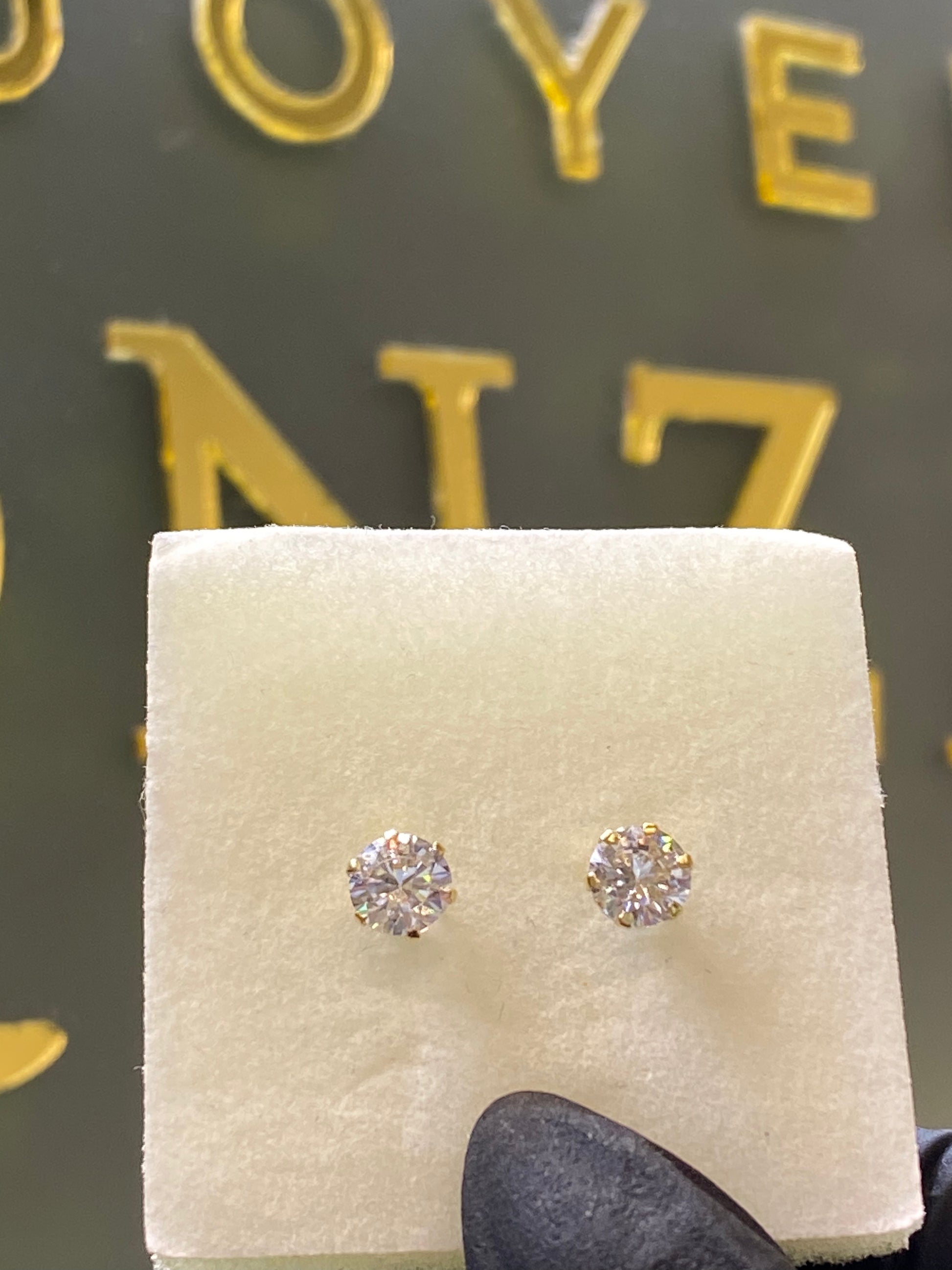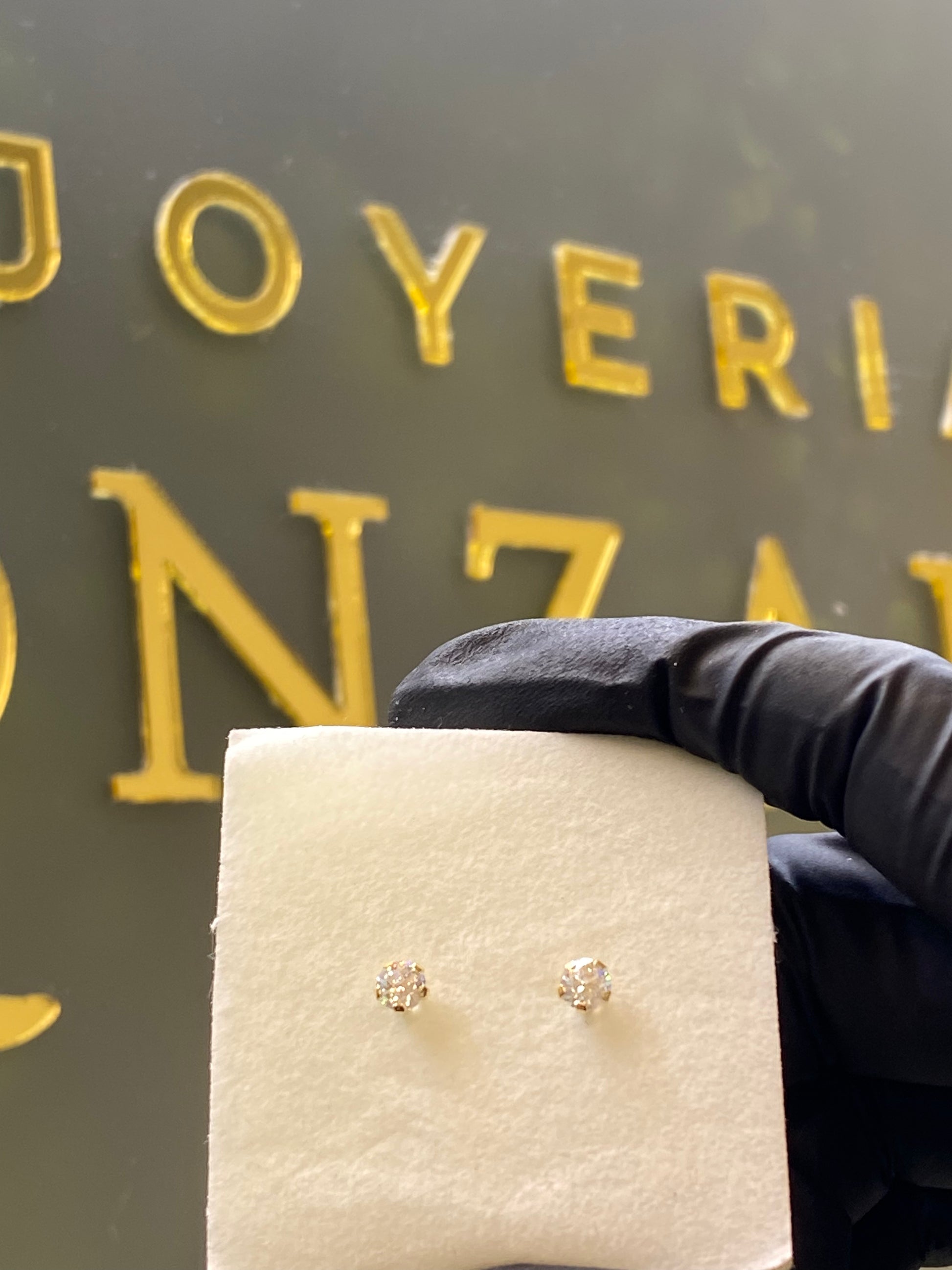Broquel de oro amarillo 10k montadura con piedra circonia.