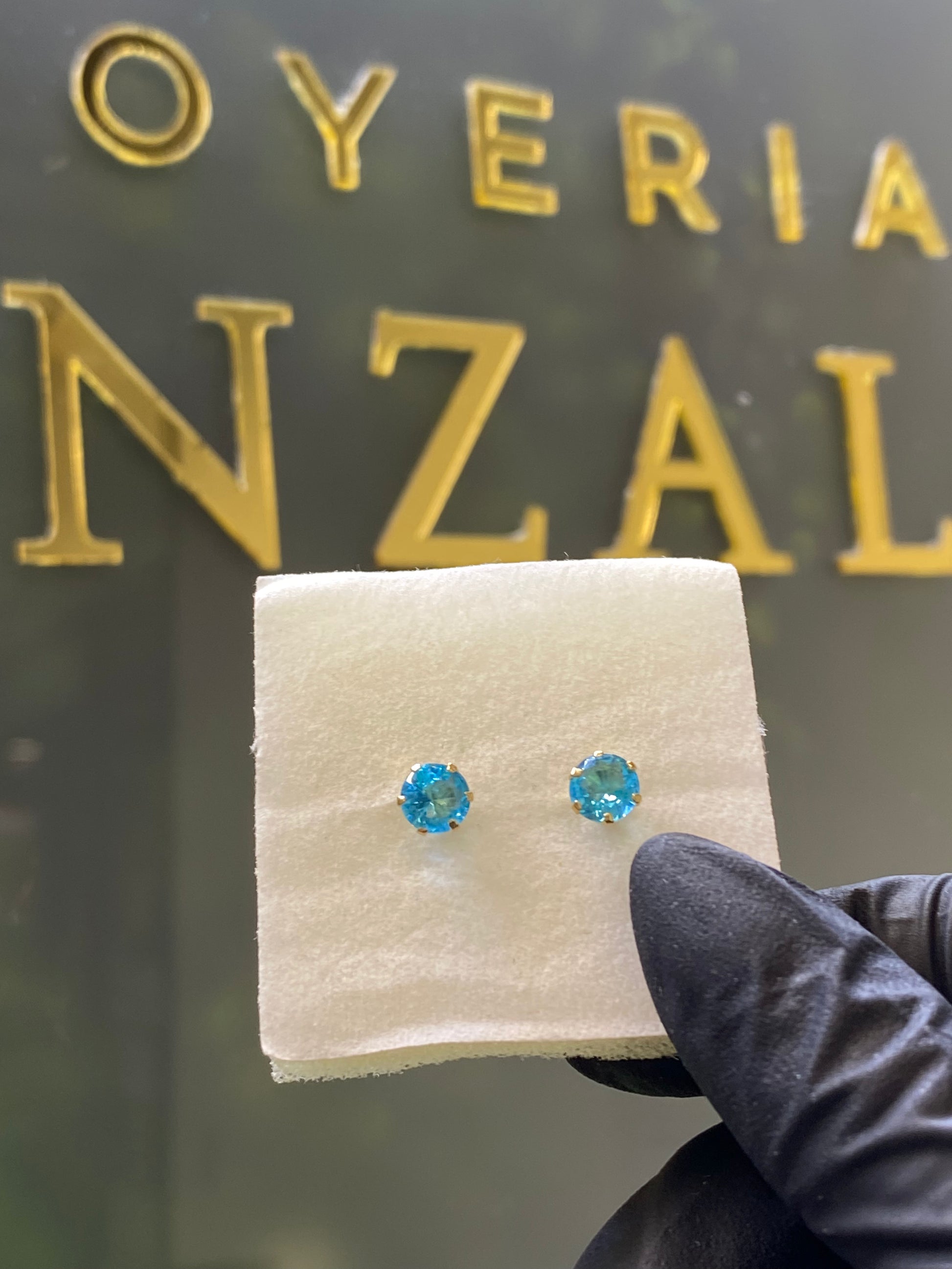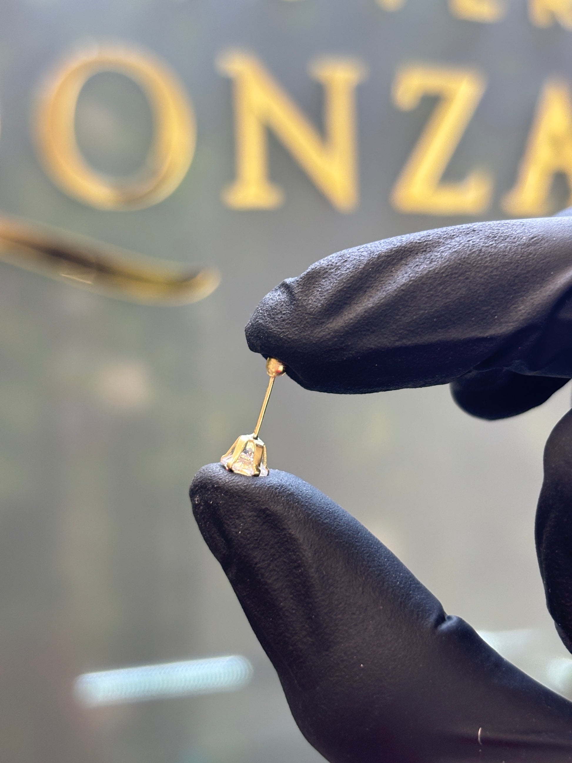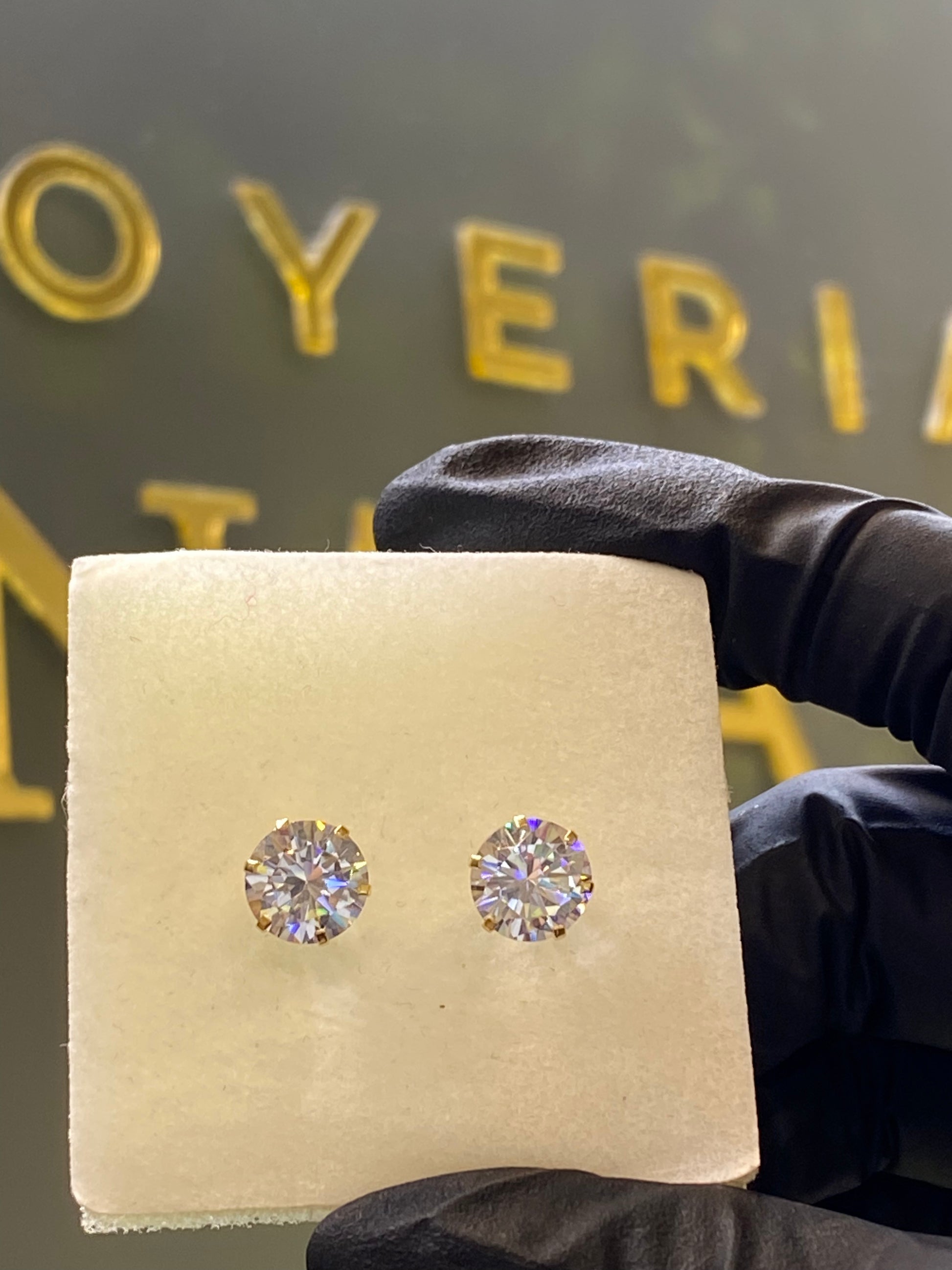 Broquel de oro amarillo 10k montadura con piedra circonia.