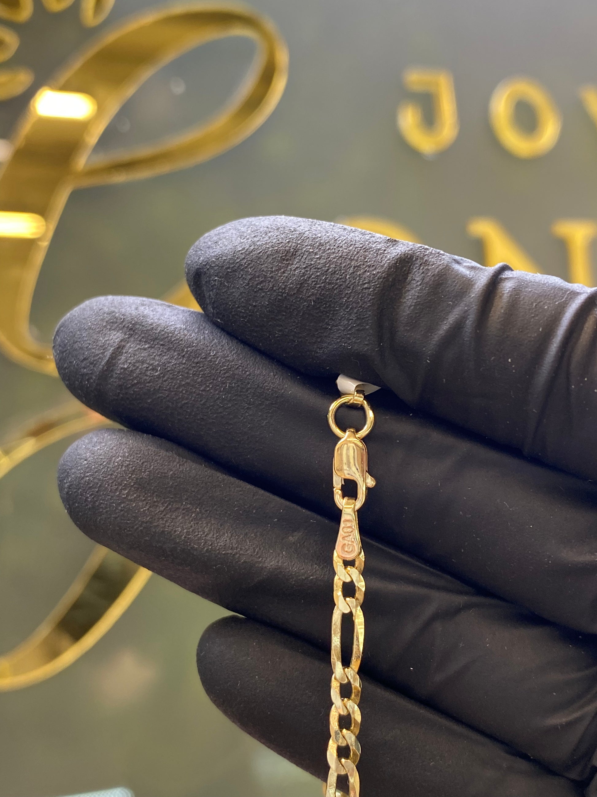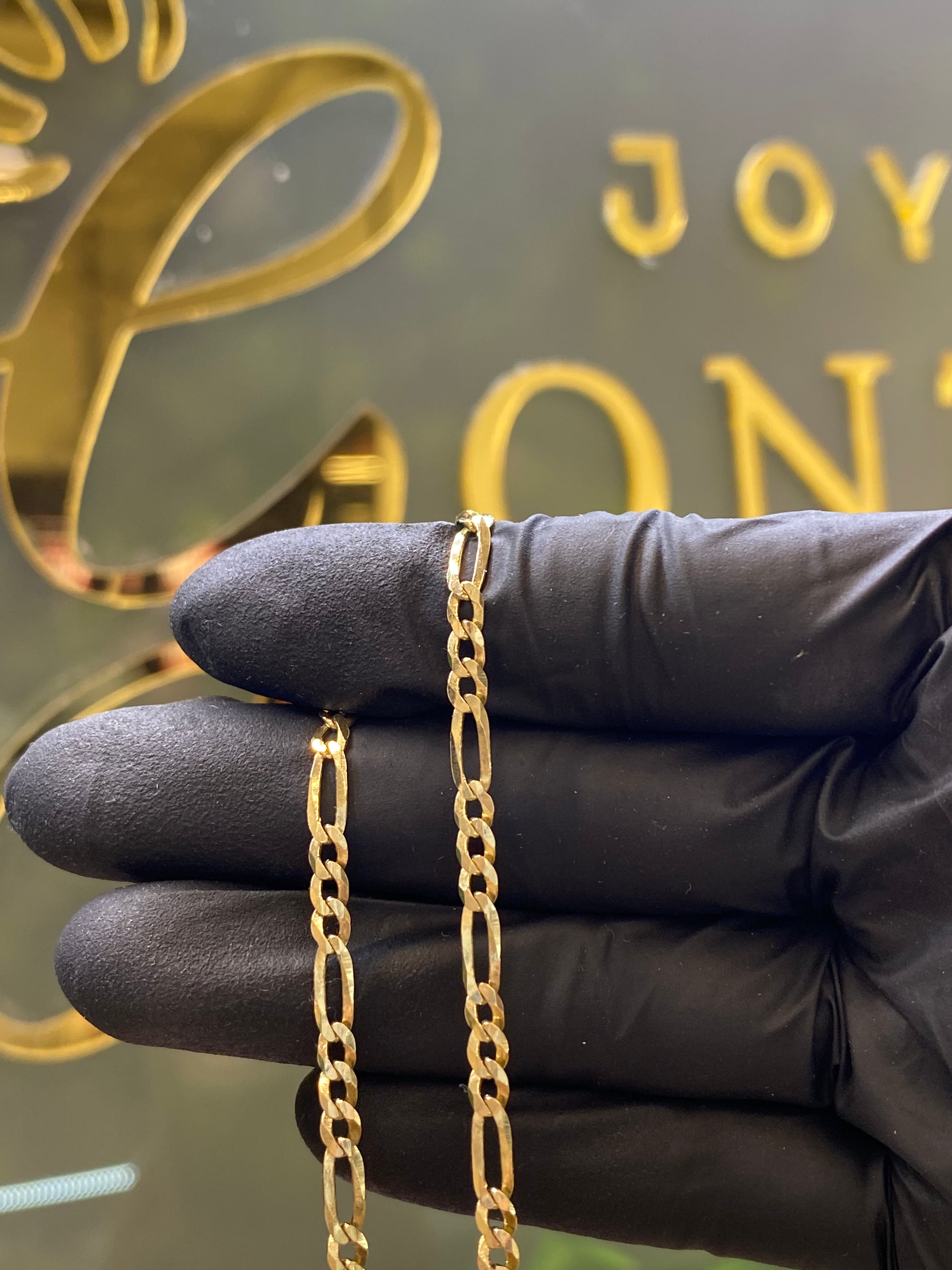 Cadena de oro de 10k tejido Cartier de 65 cm de largo (abierta) x 4 mm de ancho con un peso aproximadamente de 8.9 gramos, con broche de perico.