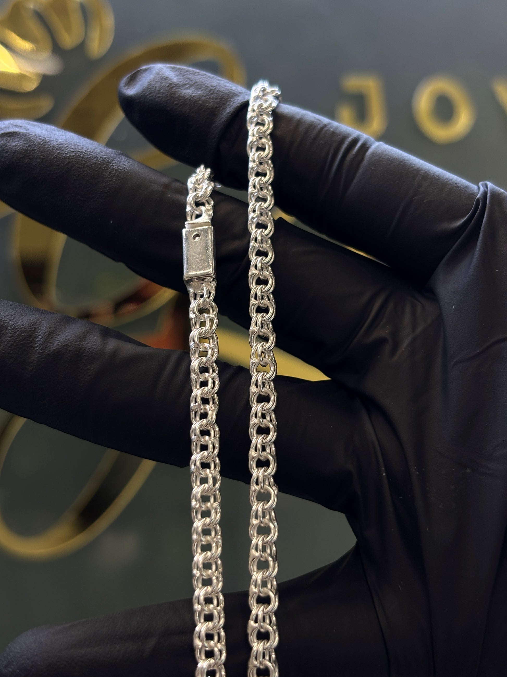 Cadena plata tejido chino de 45cm de largo (abierta) x 4mm de ancho con broche de caja y con un peso aproximado de 15.5gramos