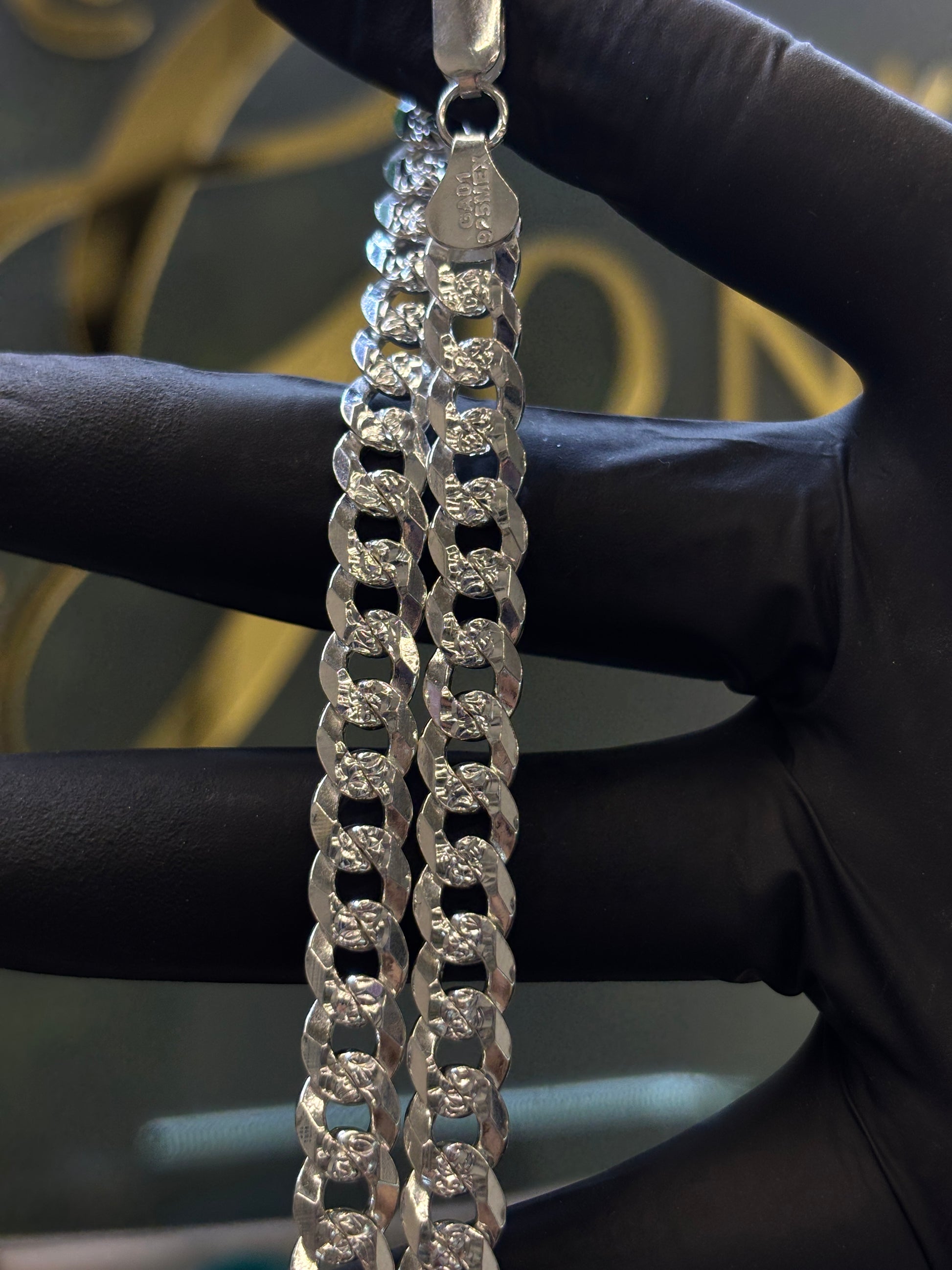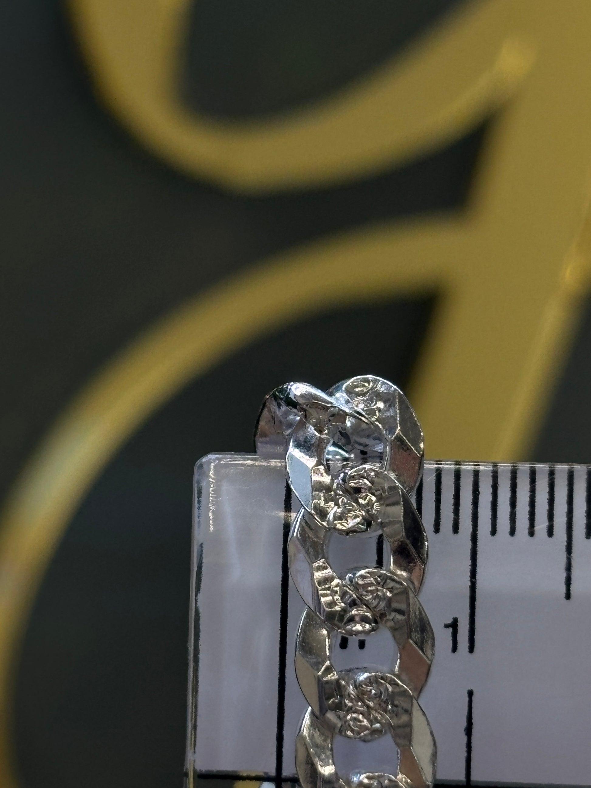 Cadena de plata ley 925 tejido cubano diamantado, de 70cm largo (abierta) x 7mm ancho y un peso aproximado de 49.7 gramos
