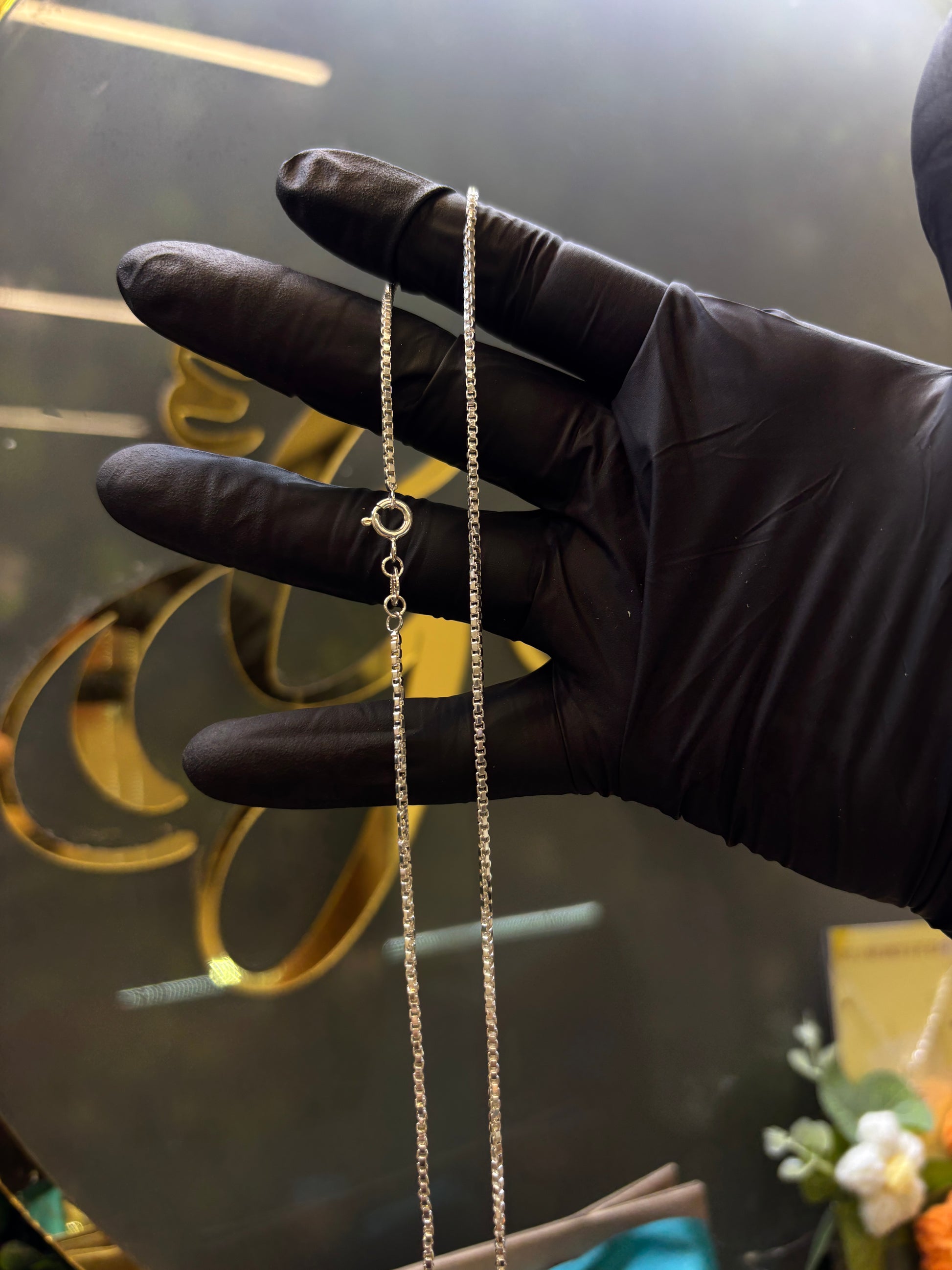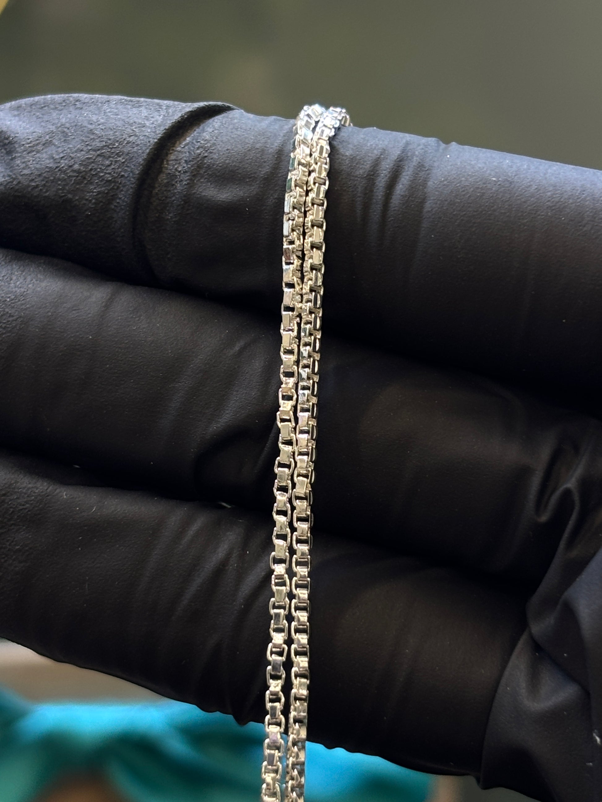 Cadena de plata tejido italiana, de 56cm de largo (abierta) x 1.5mm de ancho y con un peso aprox de 5.9