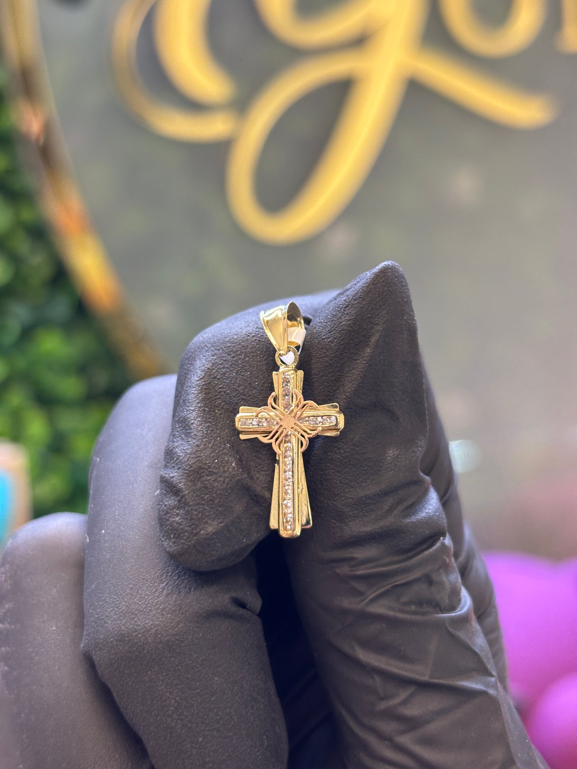 La cruz de oro de 10k con circonias y detalles en oro rosa es una pieza elegante y sofisticada. Con su diseño en oro de alta calidad, esta cruz es un reflejo de tu fe y estilo. El toque de circonias y oro rosa añade un brillo único, haciéndola perfecta para cualquier ocasión.