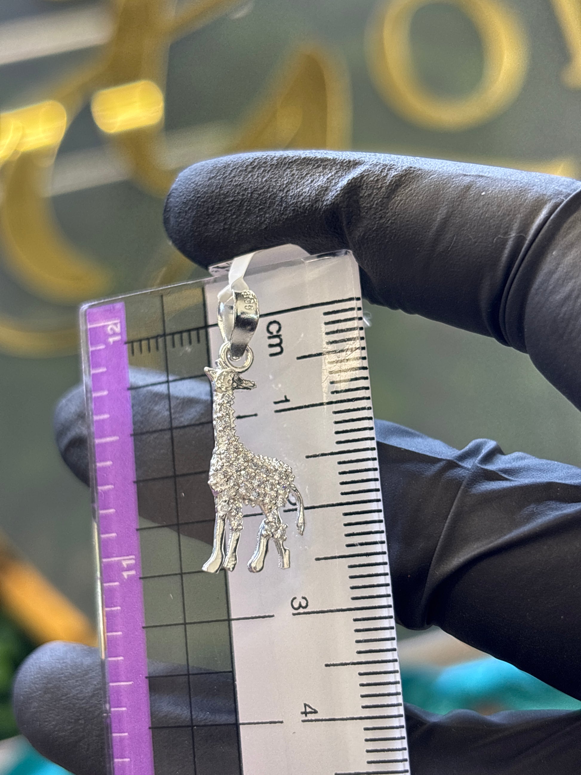 Dije de plata ley 925 de jirafa con circonia blanca de 2.5cm ya con reaza