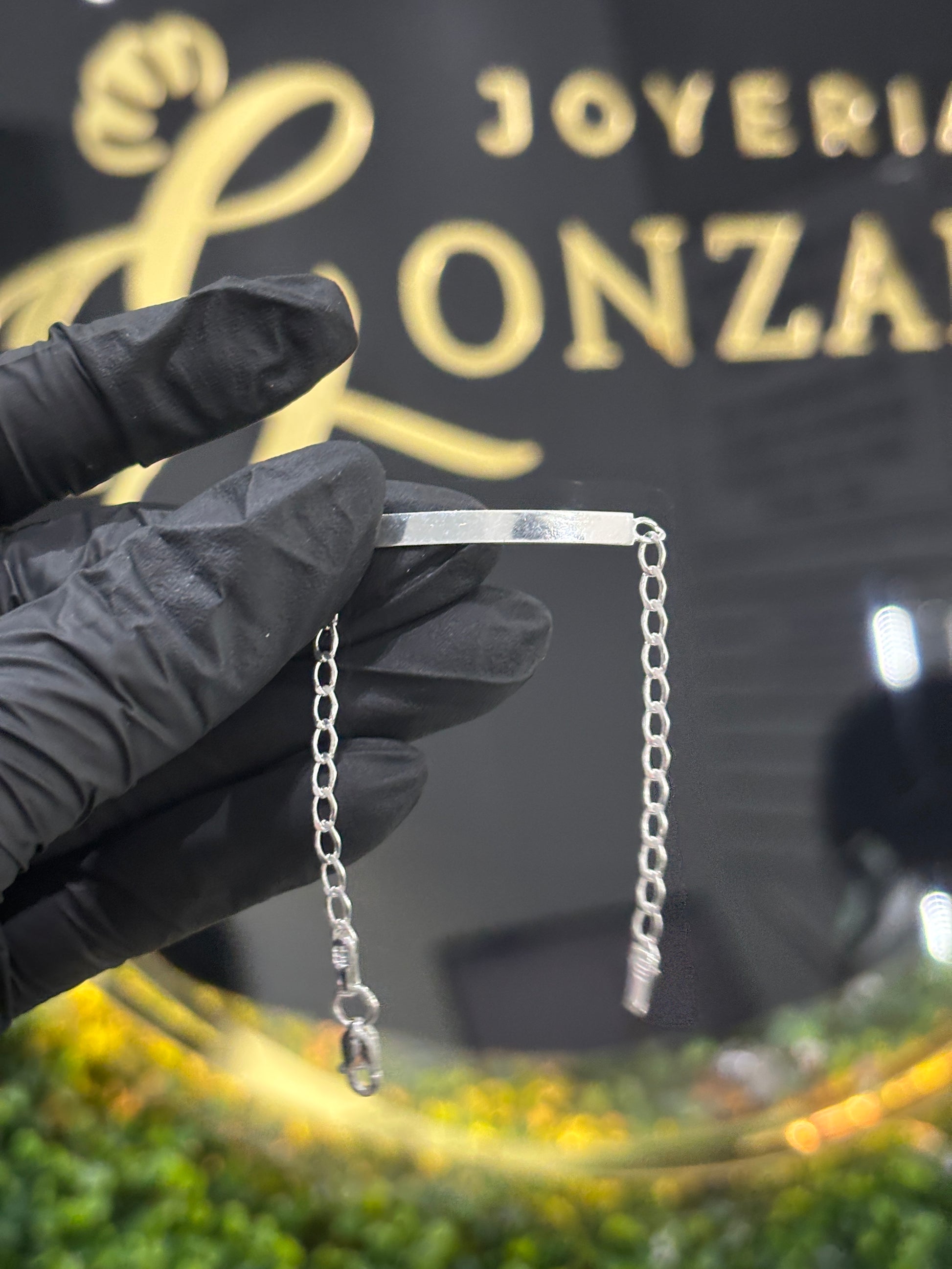 Esclava de plata 925 tejido barbado de 14cm x 3mm y la placa 3cm x 3mm