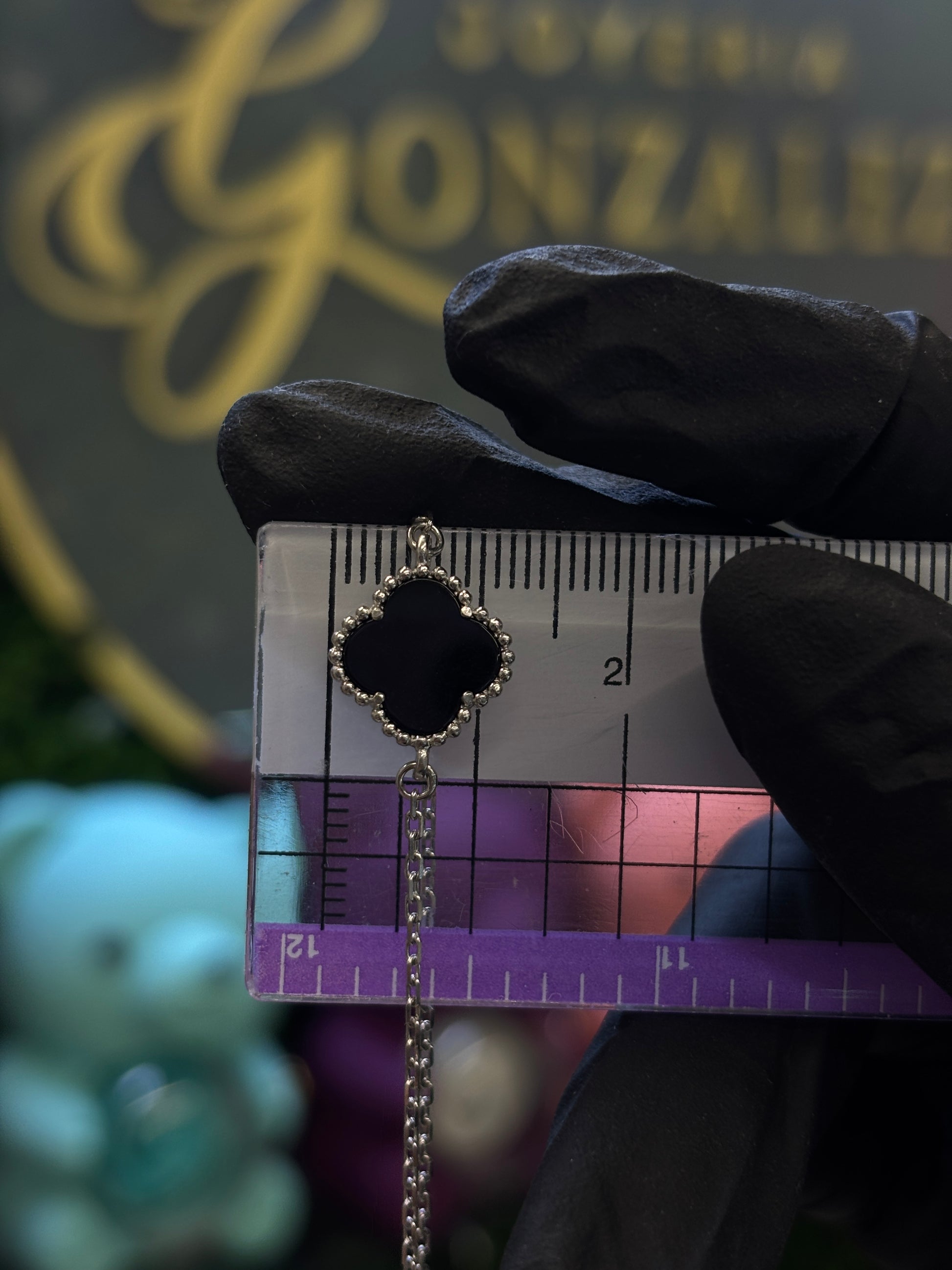 Pulsera plata 925 trébol negro, con un largo de 18cm+4cm de extensión