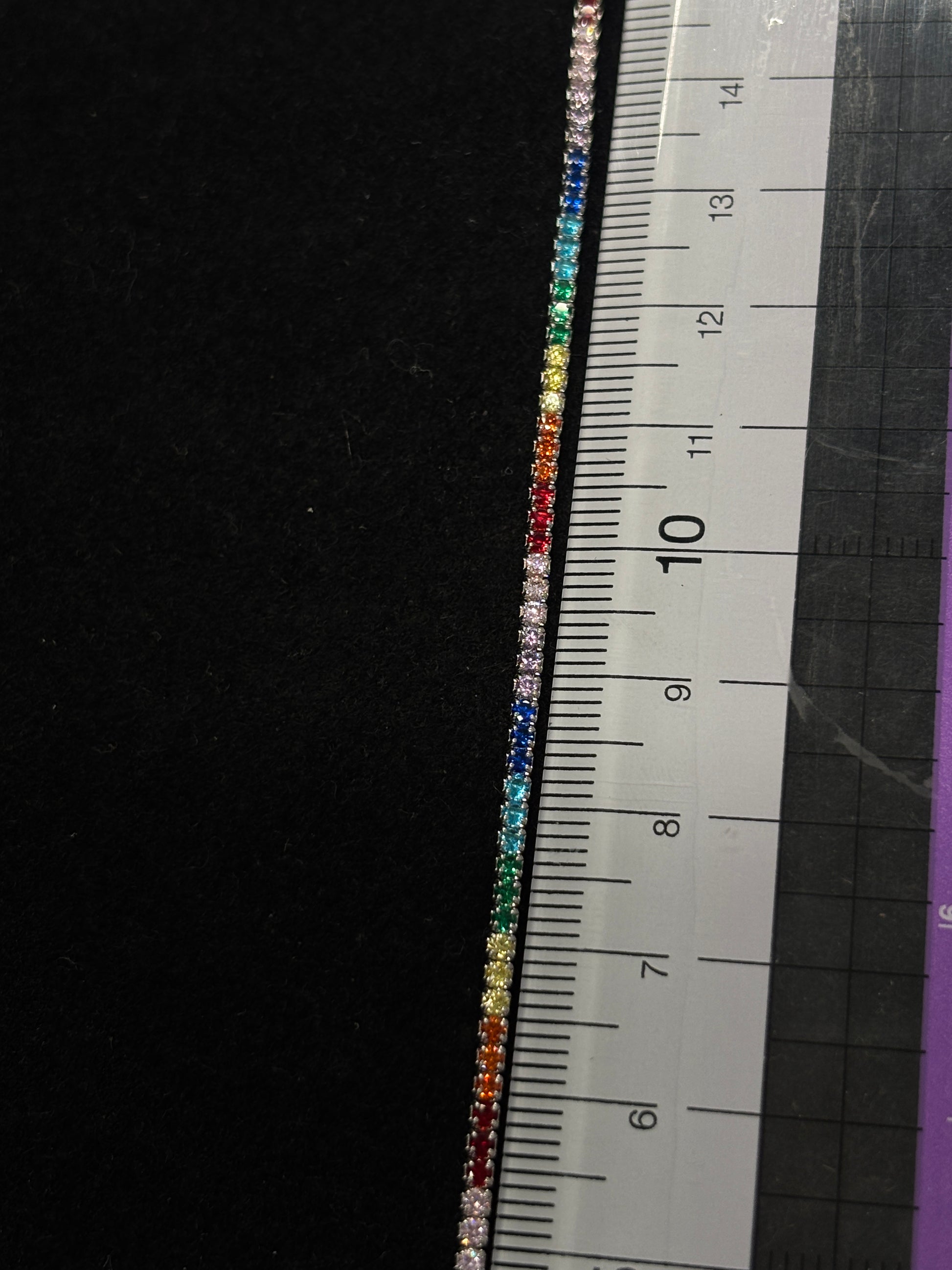 Pulsera plata 925 con circonias de colores brillantes, tiene un largo de 18.5cm